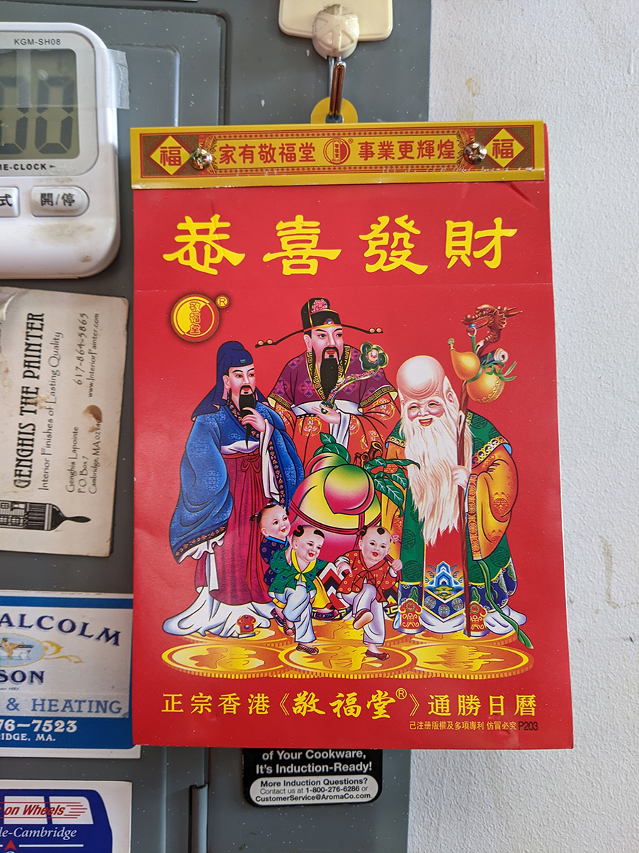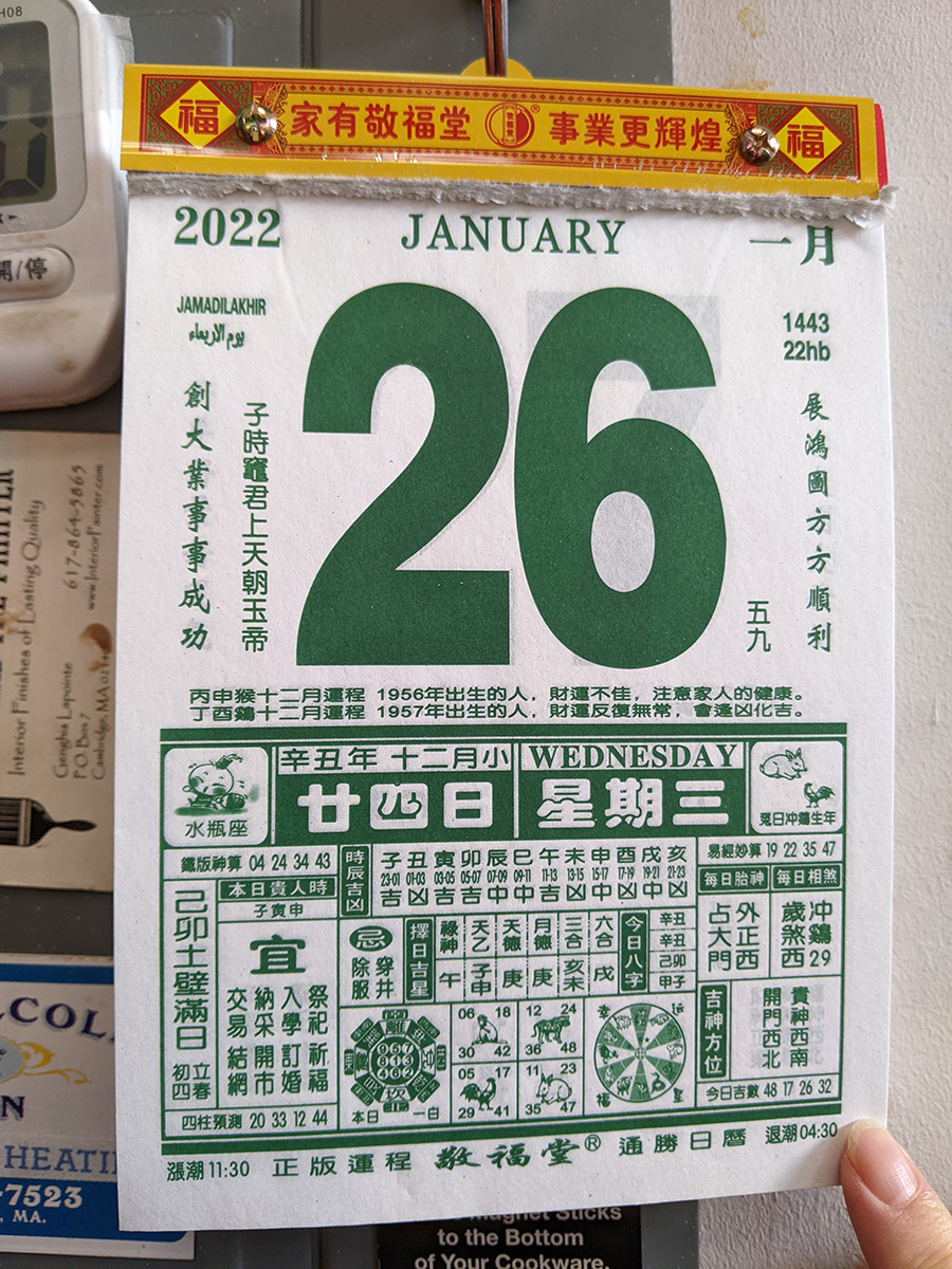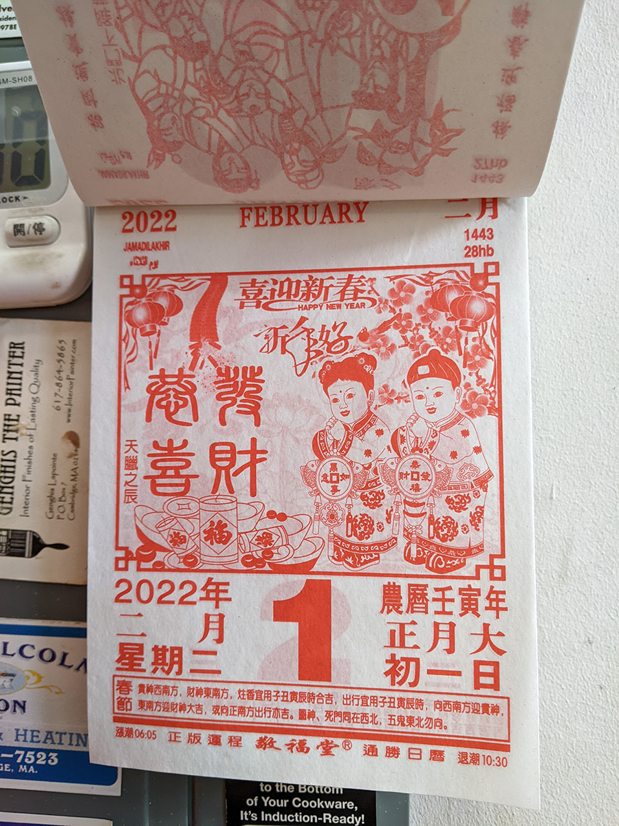 instead of going home, i kept going until i arrived at the cafe. we hung up the daily tear-off chinese calendar. while a staple in old chinese homes,