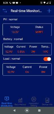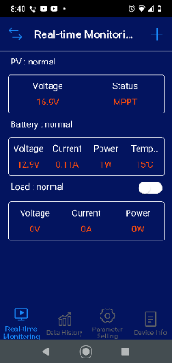 the HQST also comes with bluetooth built-in, with shows a lot more info than the built-in LCD screen. MPPT controllers are more efficient than PWM controllers, adjusting the current to maximize the charging output. the MPPT was set to sealed lead acid battery, to match the battery type of the 35Ah portable battery. the real test will come when we get our LiFePo4 batteries sometimes the end of march.