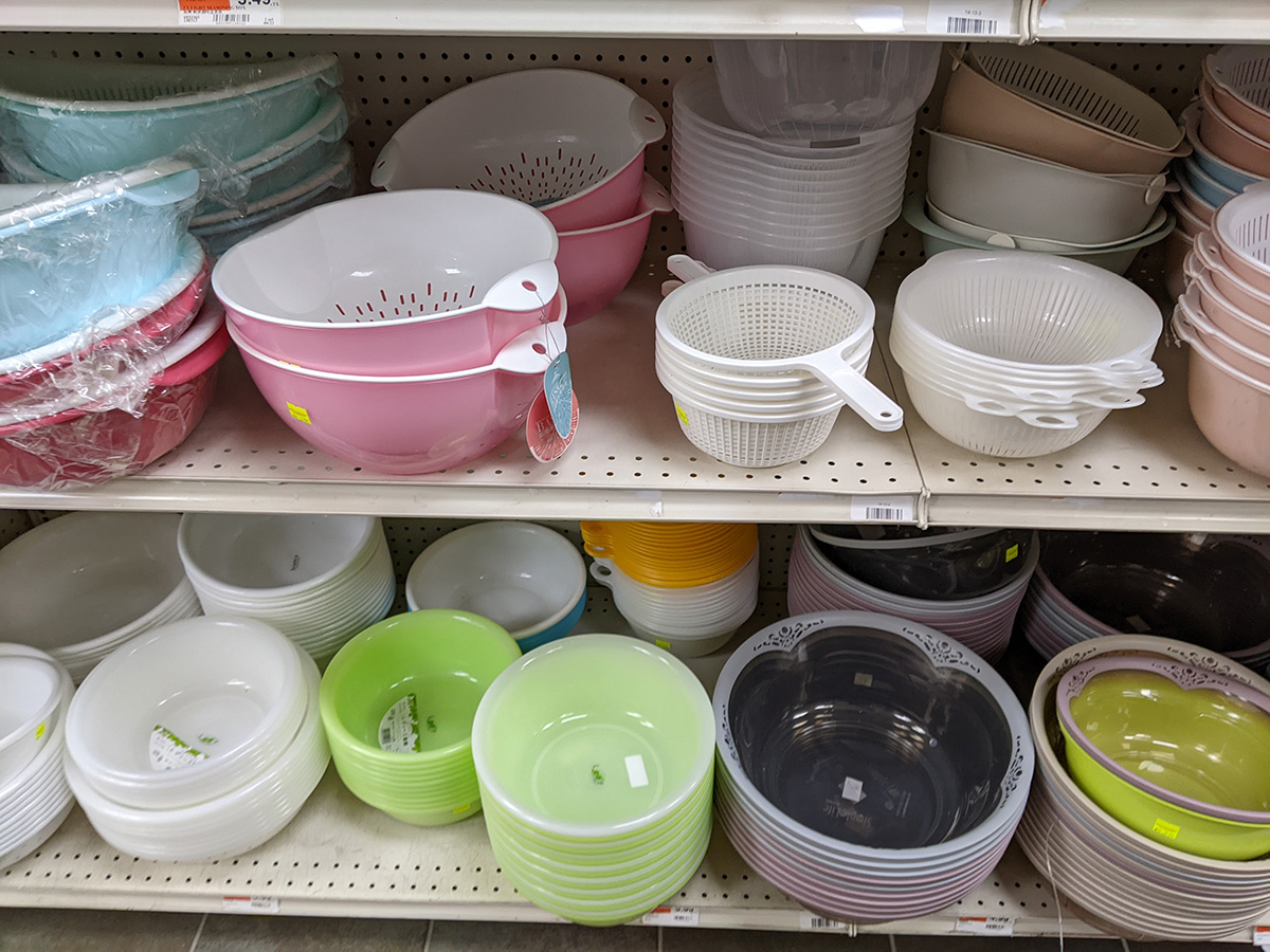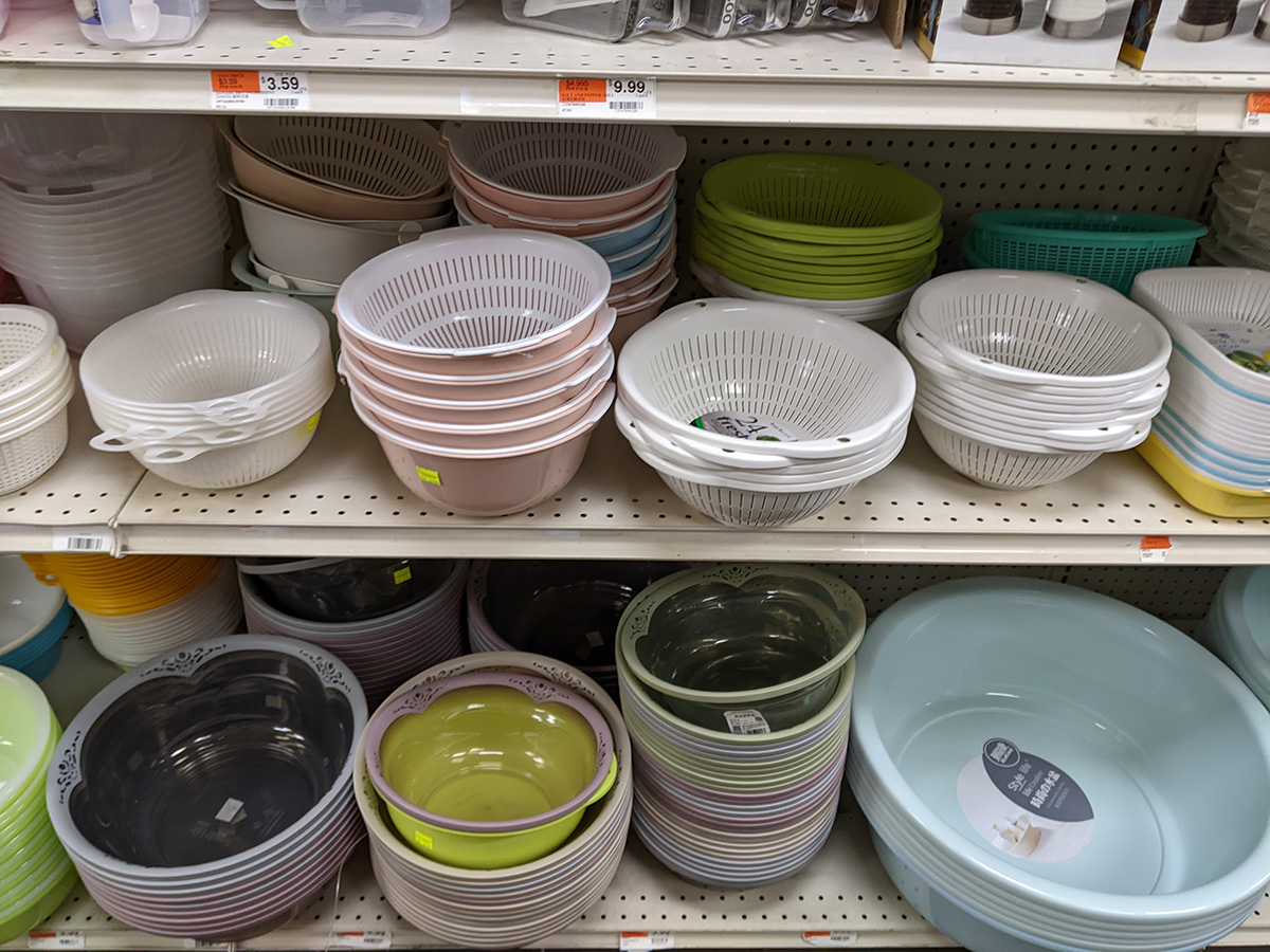 instead of c-mart, i went to ming's market instead. it was the most crowd i've seen it in a while. ming was in a bit of a funk during the height of the pandemic, and both my father and i thought it might go under, but it seemed to have weathered the storm, and business is picking back up again, especially now that its chinese customers are more willing to come out and go grocery shopping again. it was crowded because chinese new year is this weekend (technically monday is chinese new year's eve, but most chinese people will celebrate it this weekend for practicality). they sold daily tear-off chinese calendars for $2.99, so naturally i got one. i also looked for a good-sized plastic colander to continue my mung bean sprouting experiments. i ended up getting the biggest one i could find (japanese made no less, $3) with plenty of holes for the roots to grow out from. they also sold safety can openers, which i only just recently learned about - i was tempted to get one but resisted, i have too many kitchen gadgets as it is.