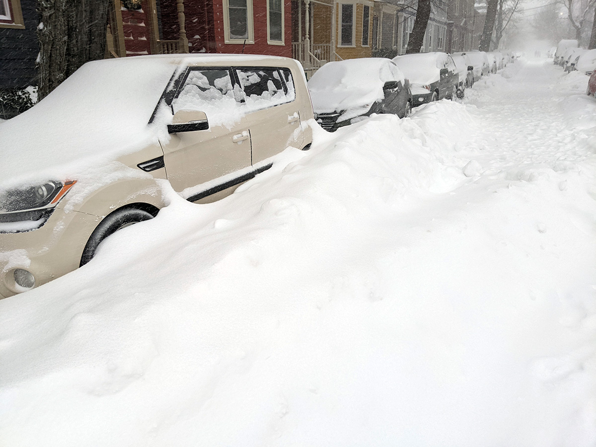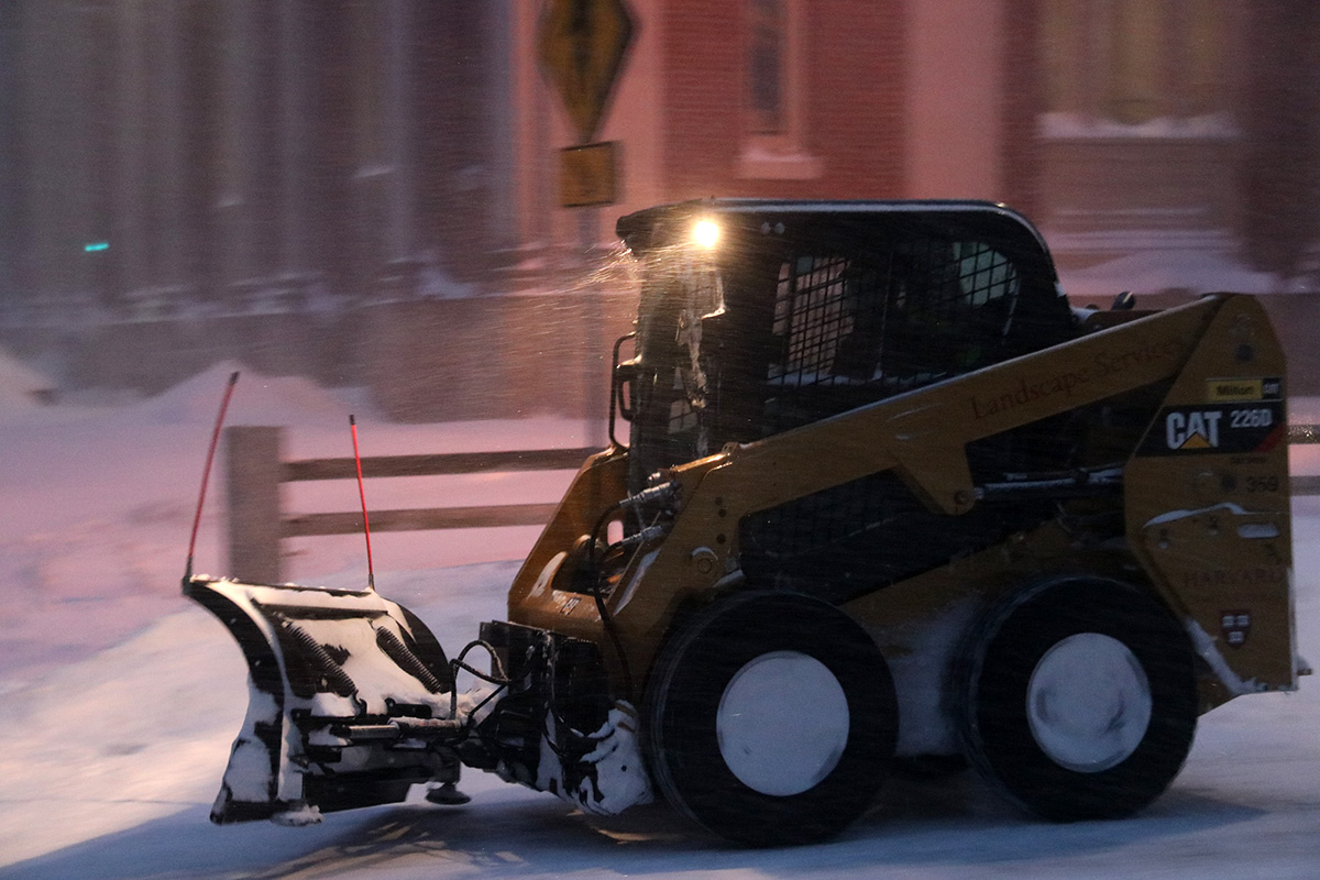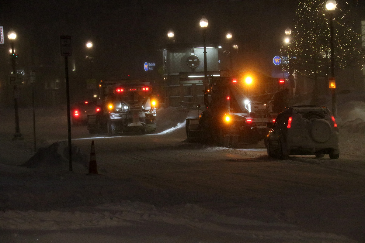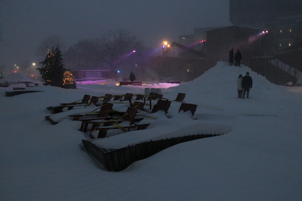 i tried to walk on the sidewalks but many weren't shoveled yet, so the only recourse was to walk in the streets. many other people had the same idea, and i was surprised to see a lot of people out and about, taking in the snowstorm. fortunately the only vehicles on the roads were snowplows. the pedestrians didn't seem to notice them, neither did the plow drivers do any honking, everyone doing their own slow dance. the landscape looked desolate, dystopian, like a scene from dune, except instead of sand it was ice crystals. the plows - with their blinking lights - where like futuristic spaceships. i spoke with one plow driver who was knocking off the slush on the bottom of his vehicle. he'd been working since 3am, and not quite sure when to stop. "when the city tells me," he said.