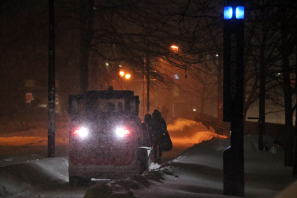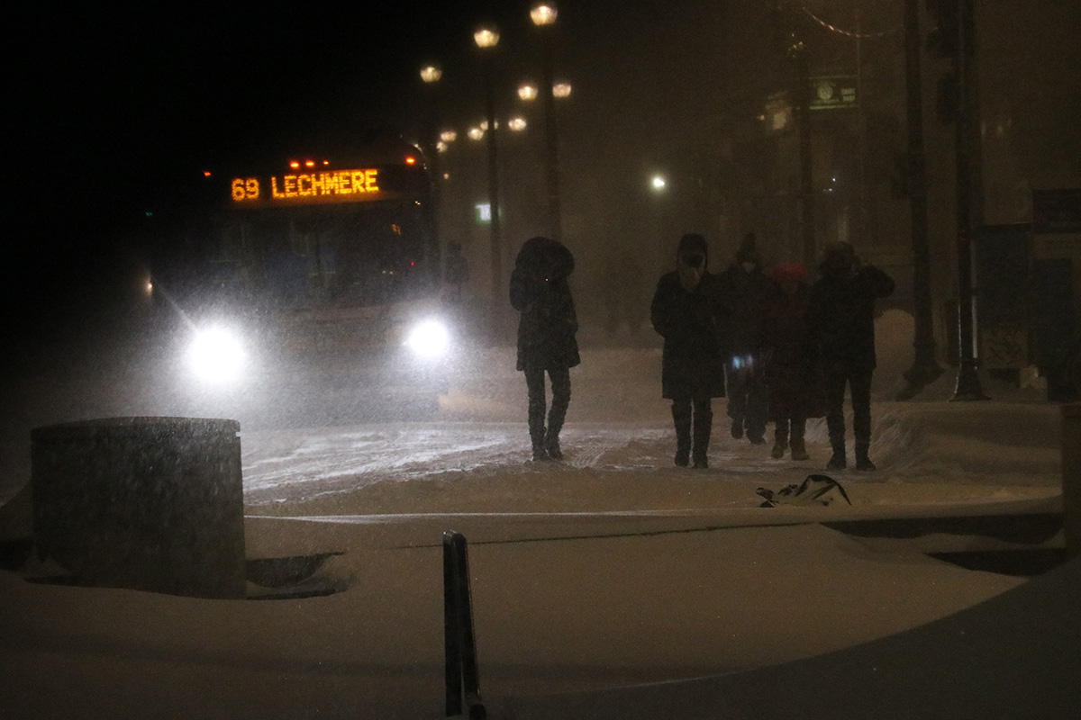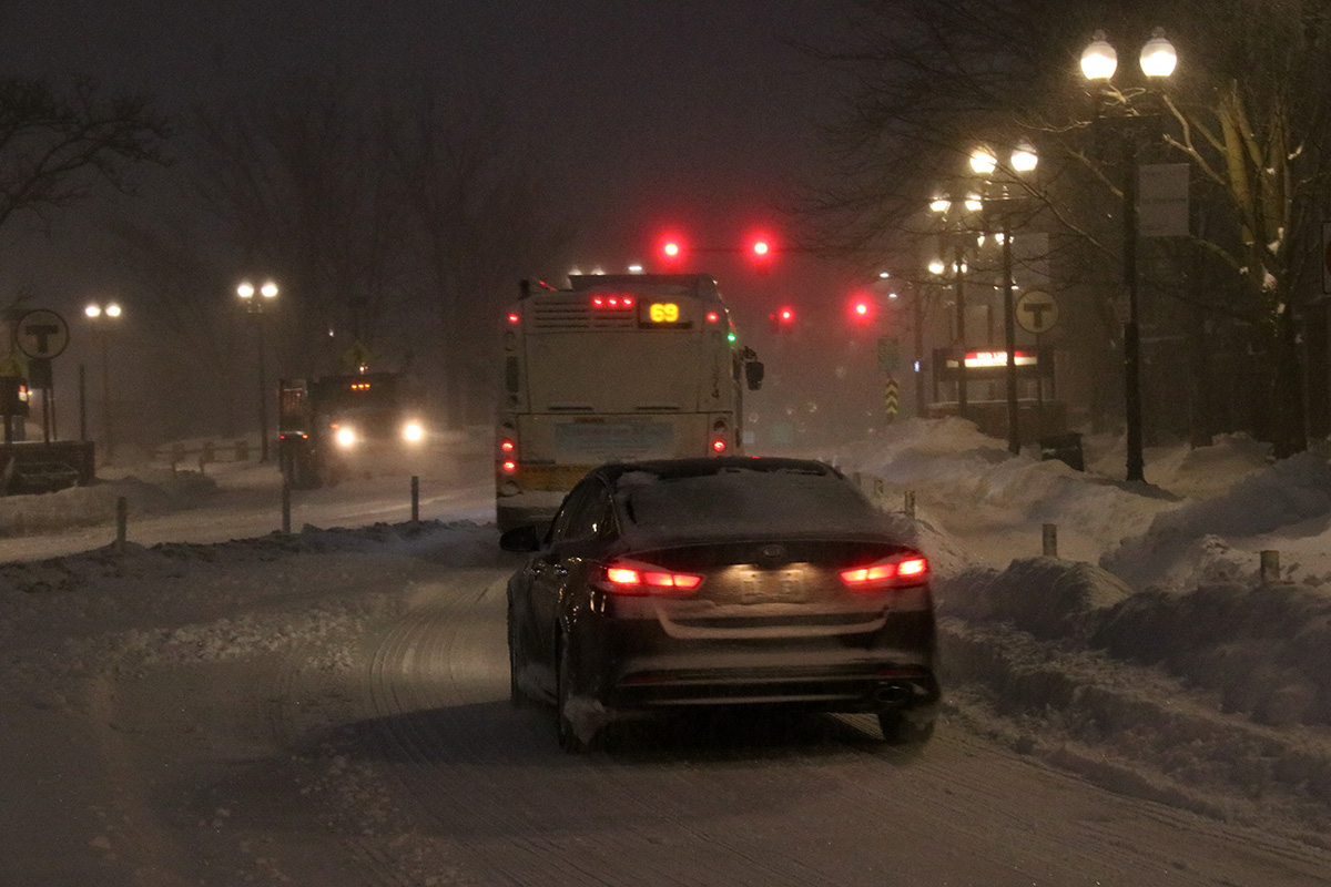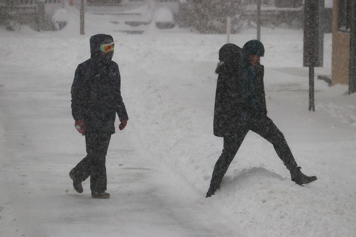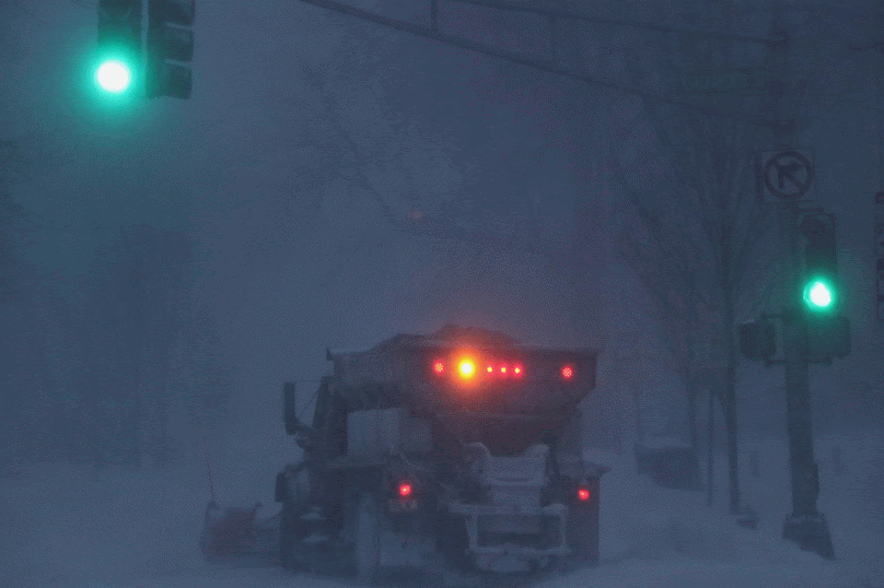 i tried to walk on the sidewalks but many weren't shoveled yet, so the only recourse was to walk in the streets. many other people had the same idea, and i was surprised to see a lot of people out and about, taking in the snowstorm. fortunately the only vehicles on the roads were snowplows. the pedestrians didn't seem to notice them, neither did the plow drivers do any honking, everyone doing their own slow dance. the landscape looked desolate, dystopian, like a scene from dune, except instead of sand it was ice crystals. the plows - with their blinking lights - where like futuristic spaceships. i spoke with one plow driver who was knocking off the slush on the bottom of his vehicle. he'd been working since 3am, and not quite sure when to stop. "when the city tells me," he said.