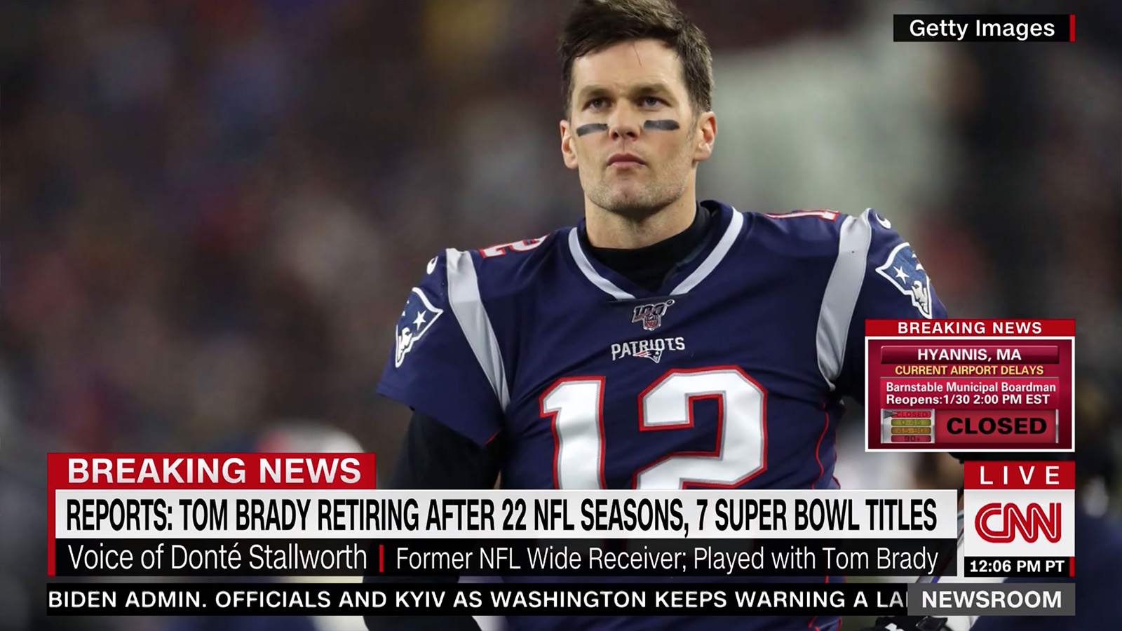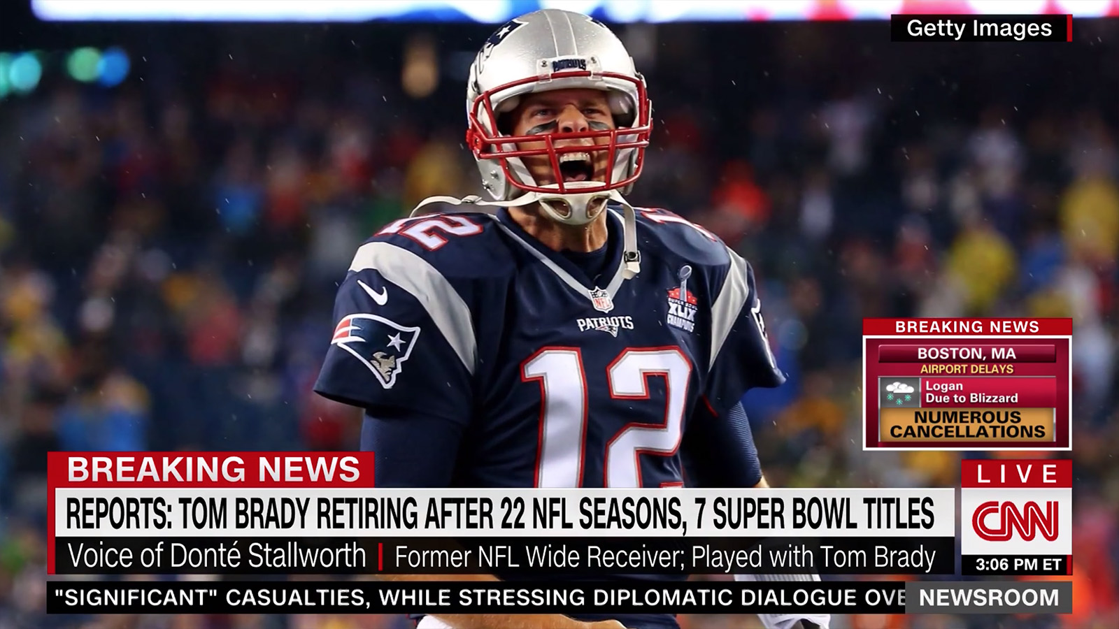 in the afternoon i turned away from the storm coverage briefly but when i turned back they weren't covering the snowstorm anymore. instead there was breaking news that tom brady was retiring. it was such breaking news, not only were all the local channels reporting it, but so were the national channels like CNN.