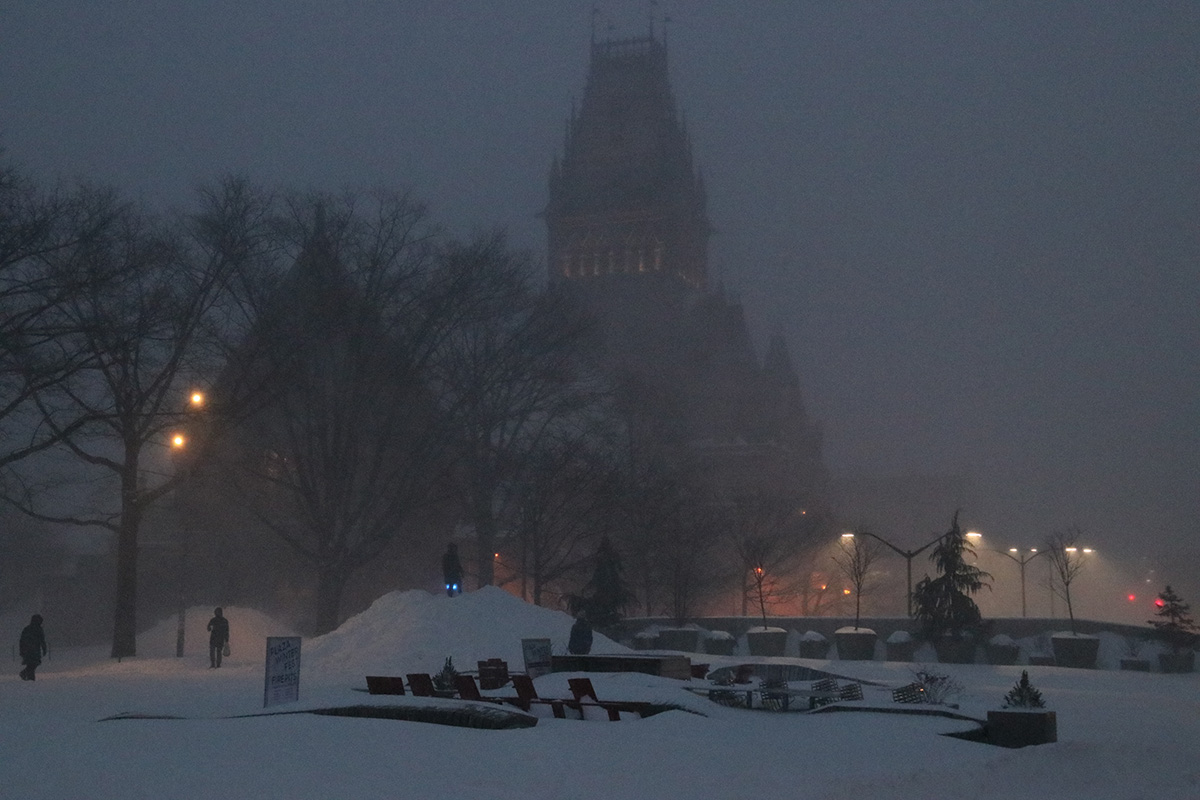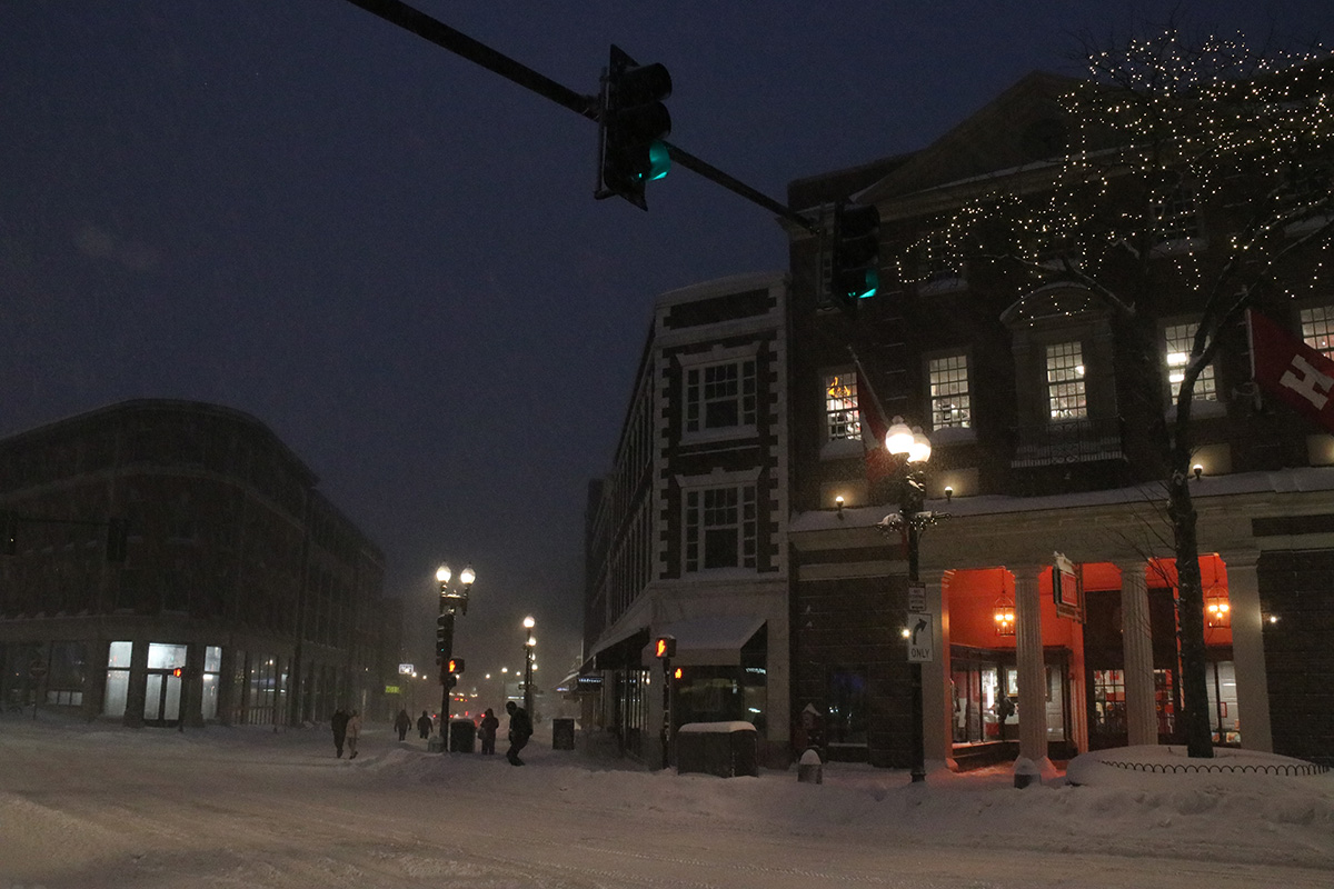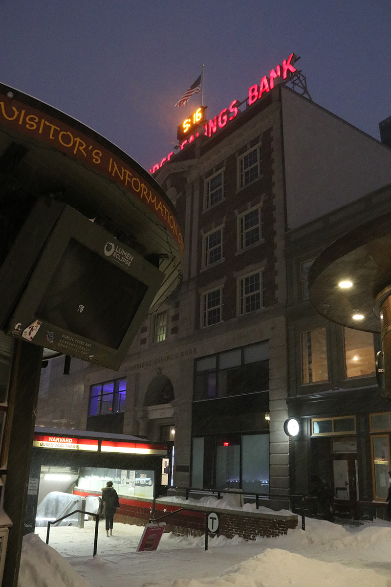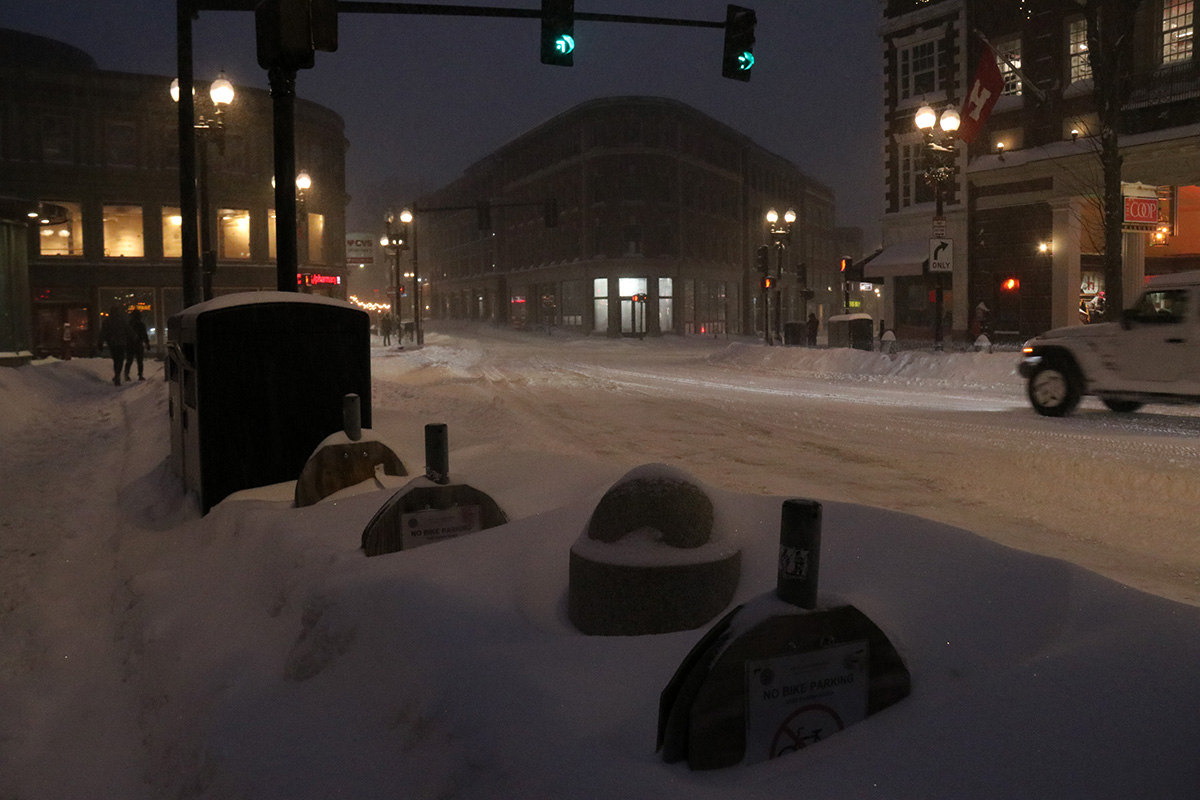 harvard square was already desolate, with high rents, empty storefronts, and pandemic. combined with a snowstorm, the place was completely dead.