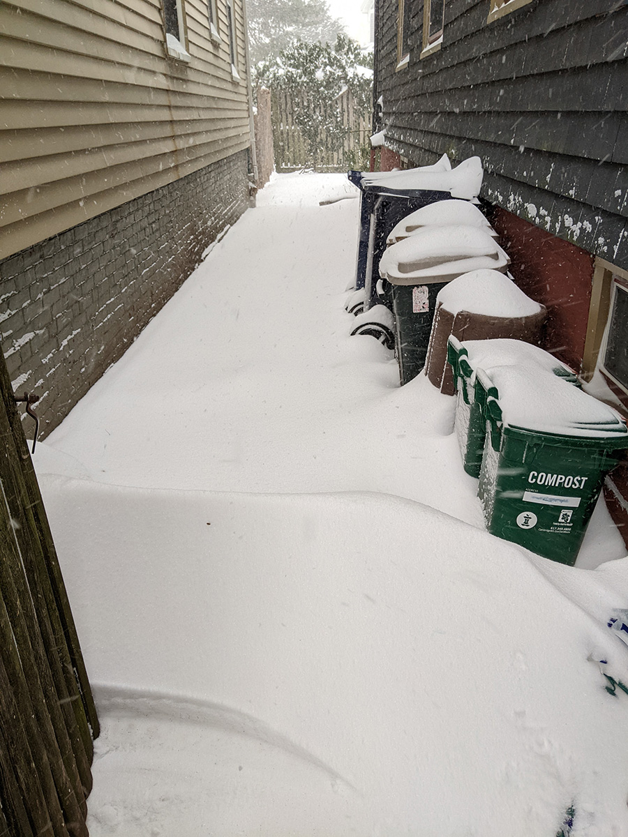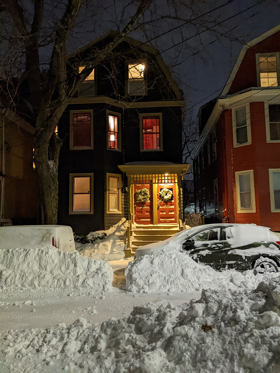 my day wasn't done yet. around 10pm i went out and shoveled one last time. i cleared a path through tall snow banks so i could get out onto the street, then cleared a path into the backyard again. never once did i see my upstairs neighbors at all today. i only saw them on the webcam, after i'd gone out, digging out their car.