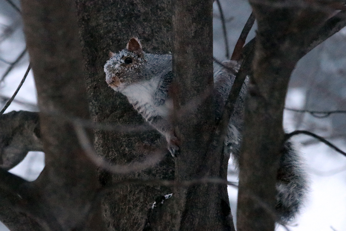 close to 5pm i went out on a photo walk. it was still snowing but not as bad, though the wind wasn't letting up. i had on my EF-S 18-200mm lens, so i could shoot wide and telephoto without having to change lenses under these wet conditions. i held my camera in one hand cradles to my chest with the LCD screen up to keep the lens from getting wet, while in the other hand i carried an umbrella. when i had to shoot something, i held the umbrella temporarily in the crook of my neck. even then, there wasn't a lot of protection for my camera, and it kept getting covered in snow, which i kept wiping off with a small towel i brought.