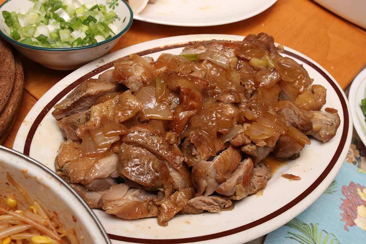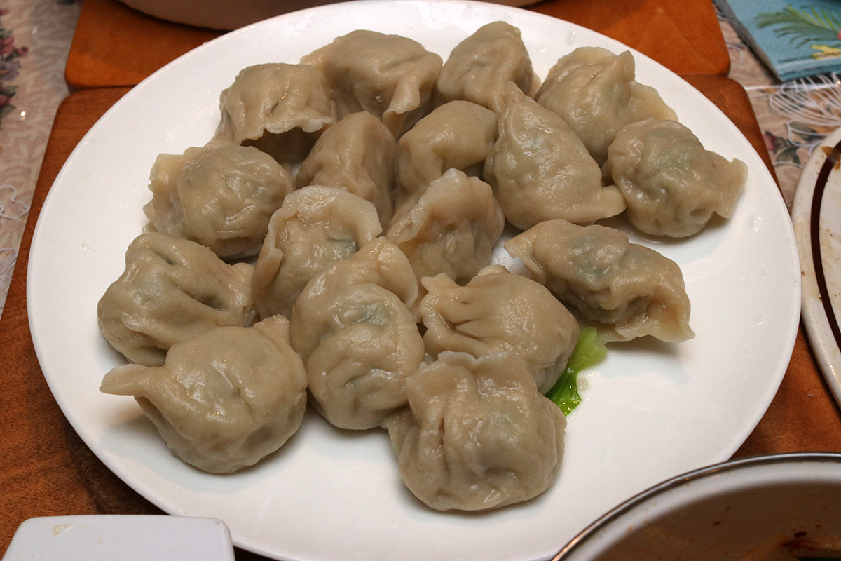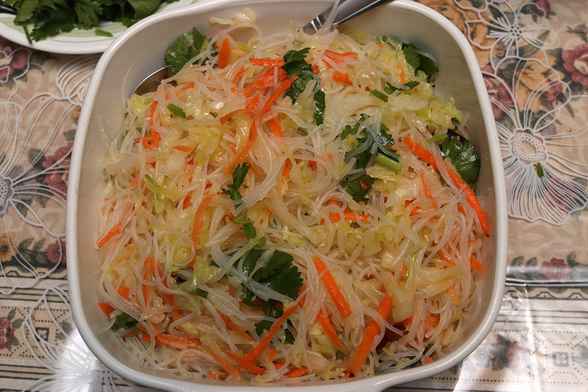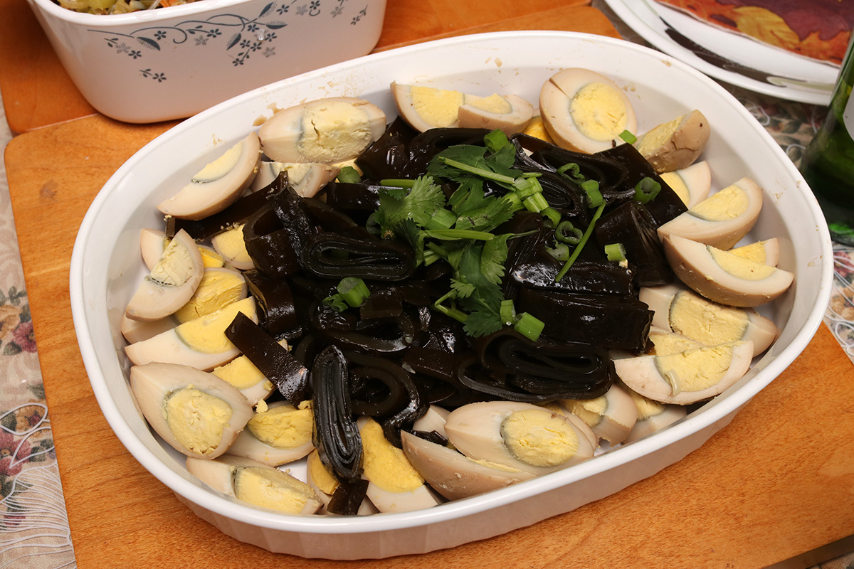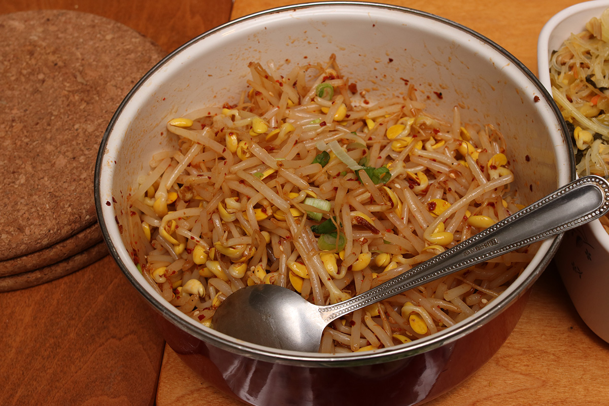 my father made a braised pork hock dish with sweet dates. my sister made these beef korean pan-fried dumplings (even though we were already having traditional chinese dumplings). my mother made a 15-ingredient dish, never seen that before. my parents also fried up some jumbo shrimps in the air fryer. i made some bean sprouts banchan and korean rice cakes.