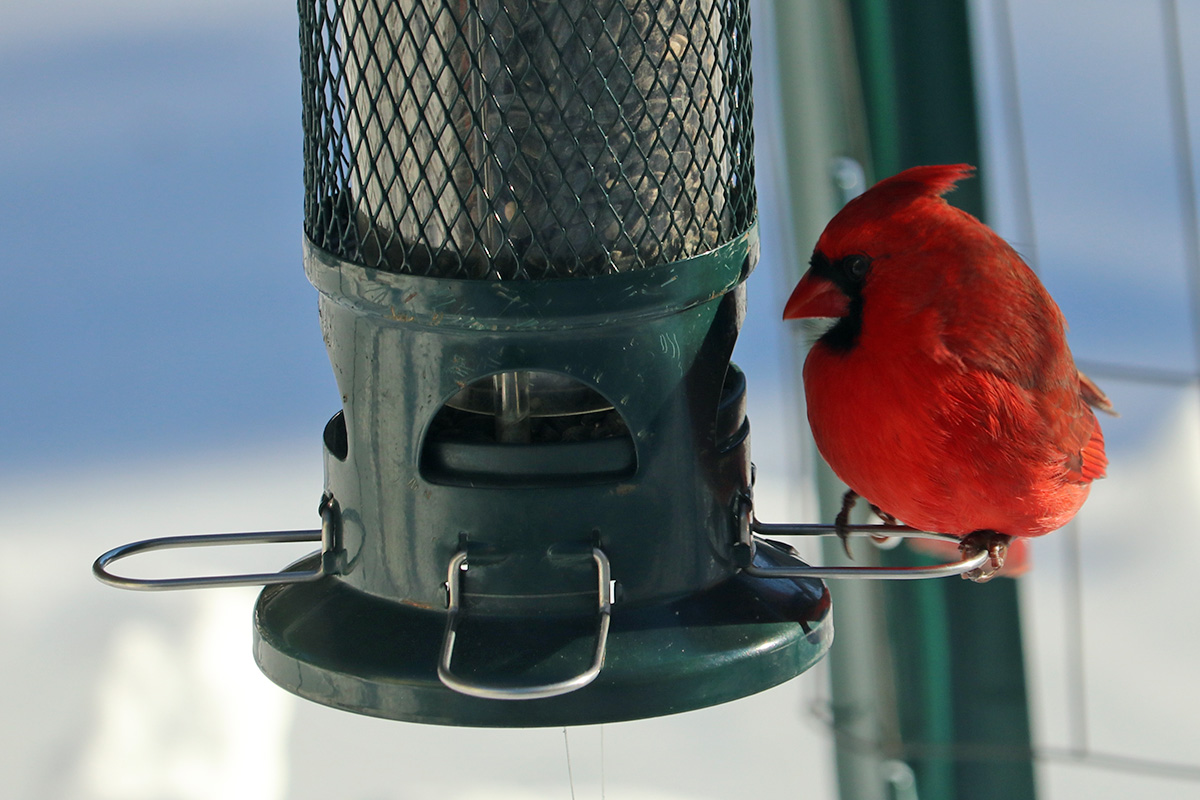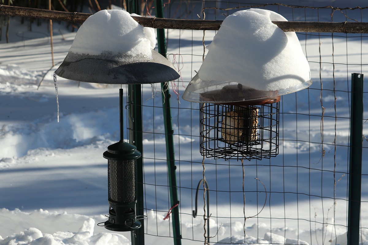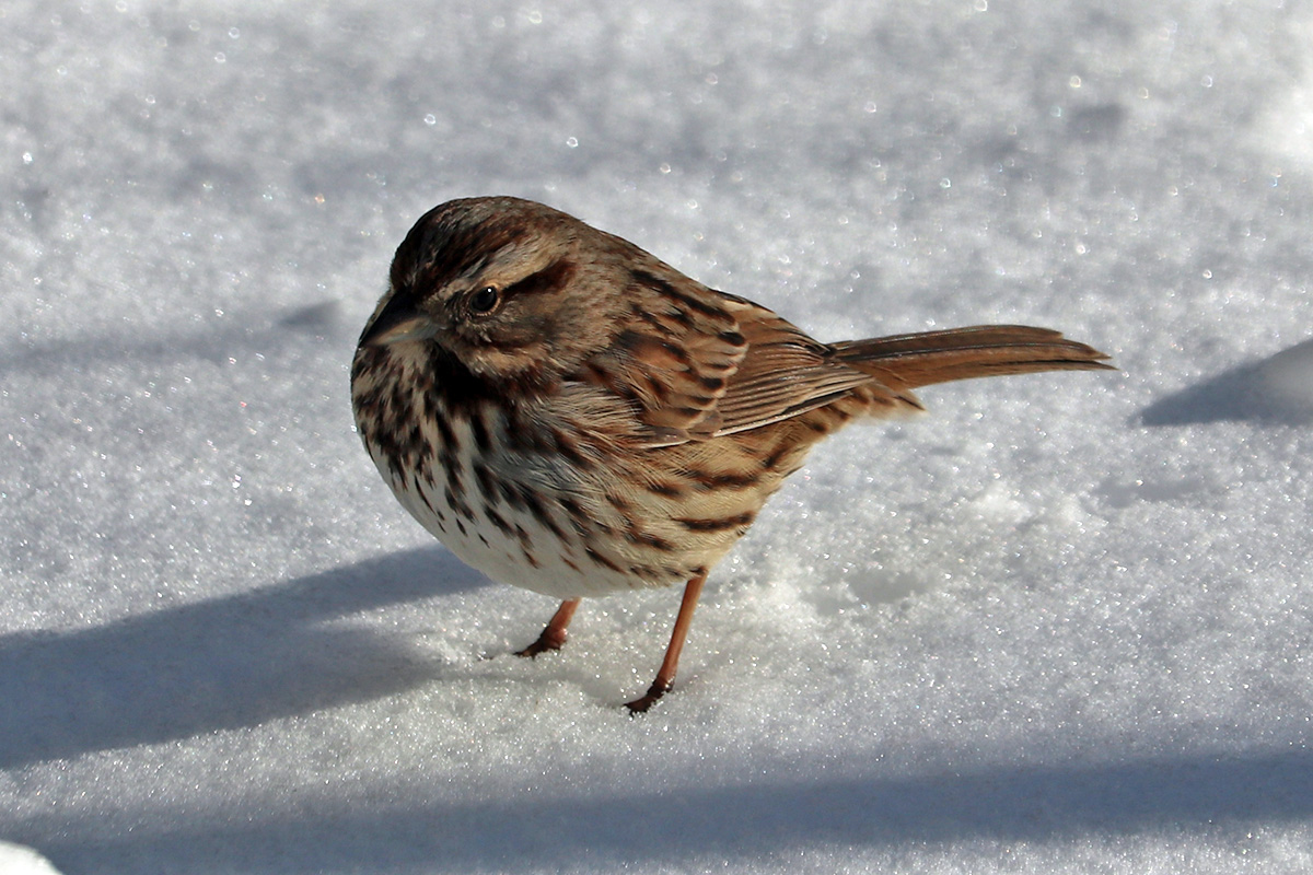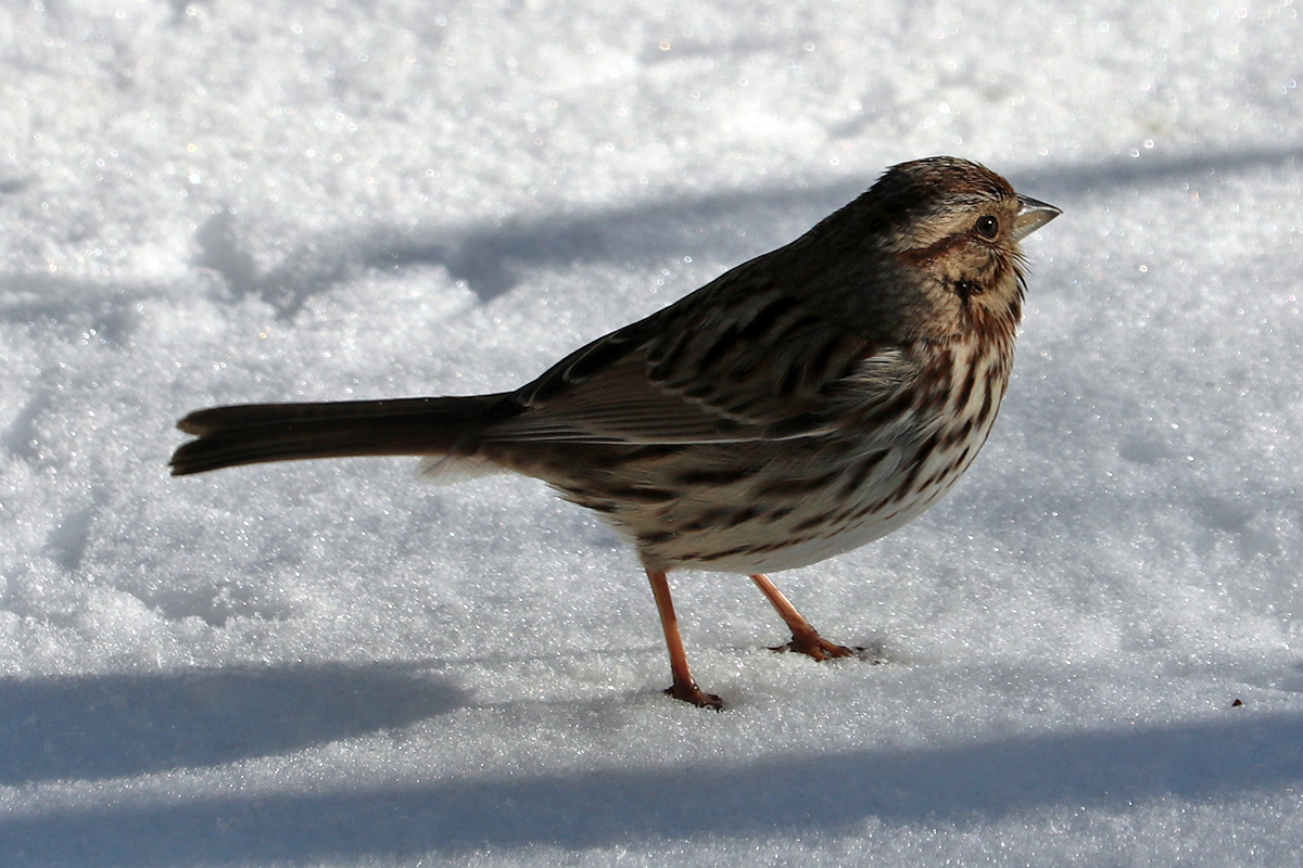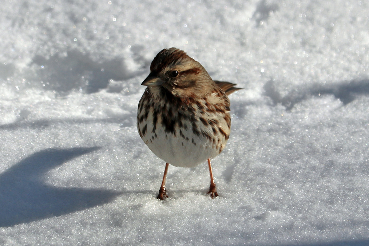 you'd think the day after a major snowstorm birds would be flocking to the feeders, but there was hardly any birds today. a male cardinal tried to get some seeds but his beak didn't seem to be able to fit into the slot. i also saw a song sparrow.