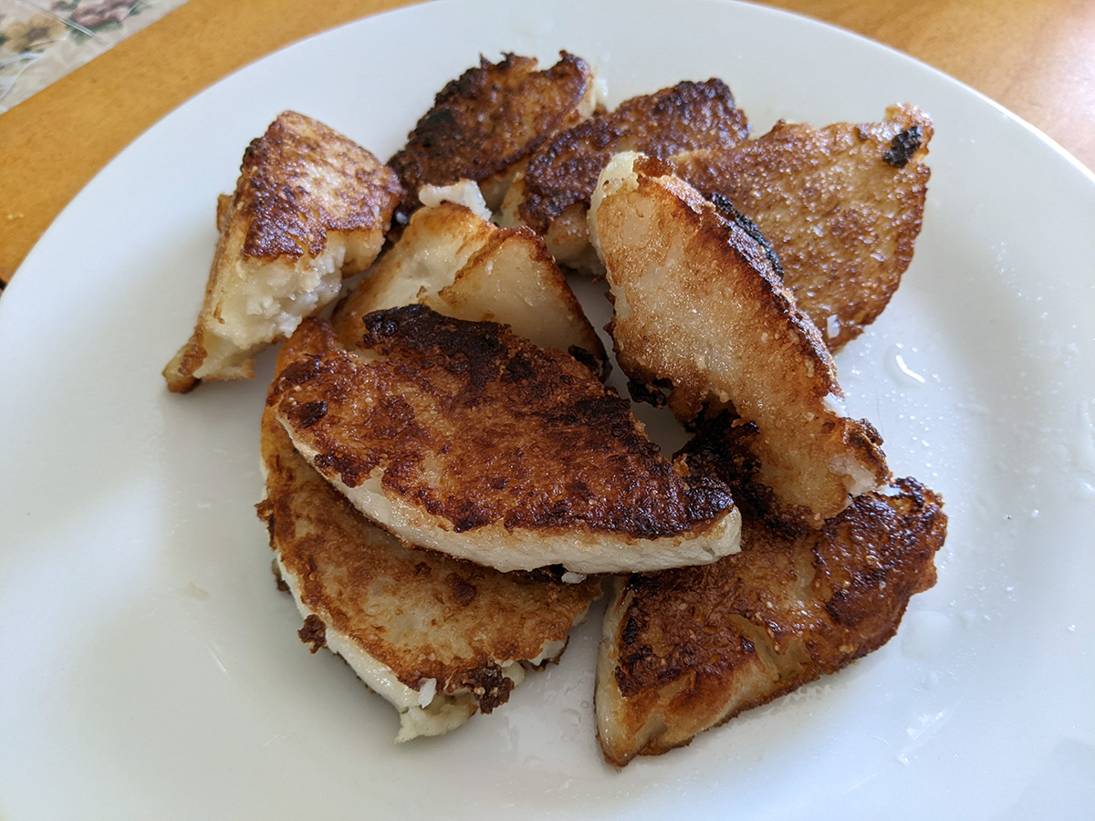 i finally had lunch around 1:45pm, some pan-seared radish cakes with thai chili sauce. they weren't that crispy to begin with, but after i complained, my father cooked them again to make them crispier.