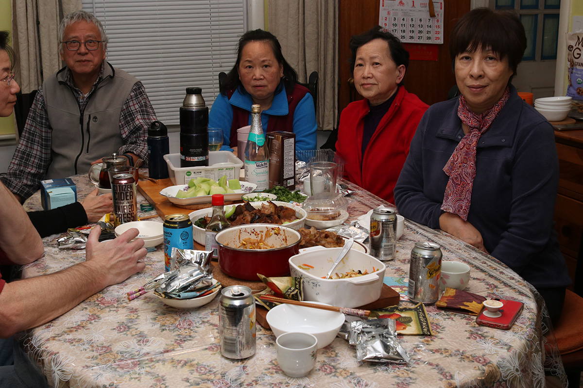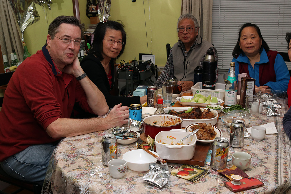 spending 2-1/2 hours clearing snow from the solar panels would've probably been the highlight of the day, but my parents were also hosting a chinese new year dinner tonight. my sister brought my 2nd aunt and her godmother around 4pm, and my aunt and uncle arrived around 5pm.