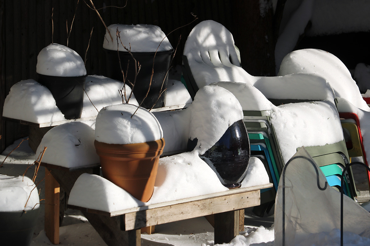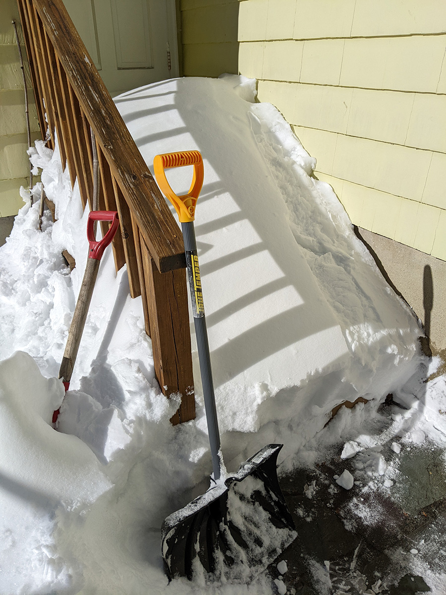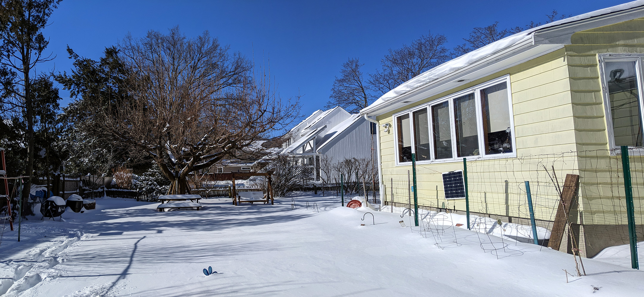 i started clearing the solar panels by 11am. it first started with clearing the snow from the backyard steps and making room to prop up the ladder.
