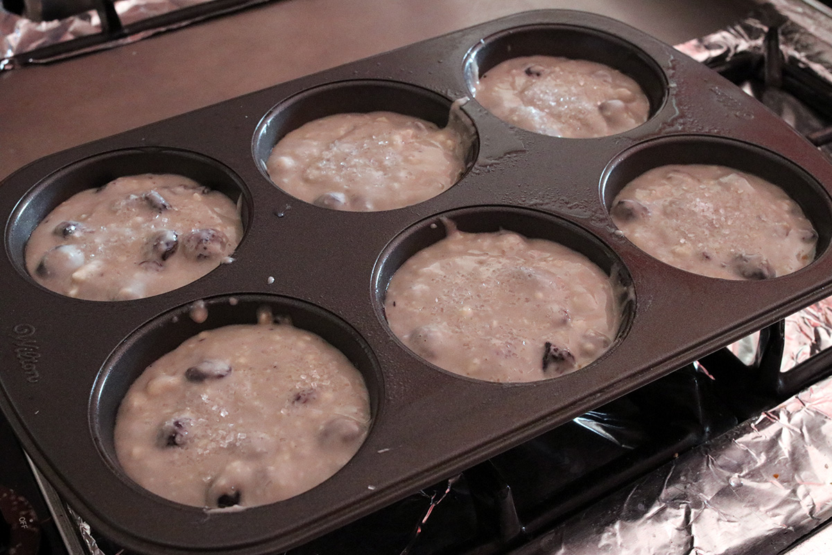 when the muffins were done cooking, i was surprised by the result. i didn't think it'd rise at all, but there was a decent muffin top. it also had the fissures of good rising. the crust itself was thin but crispy, not bad. and despite using old blueberries and old flour, you couldn't taste any of that.