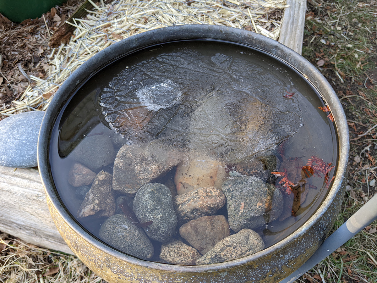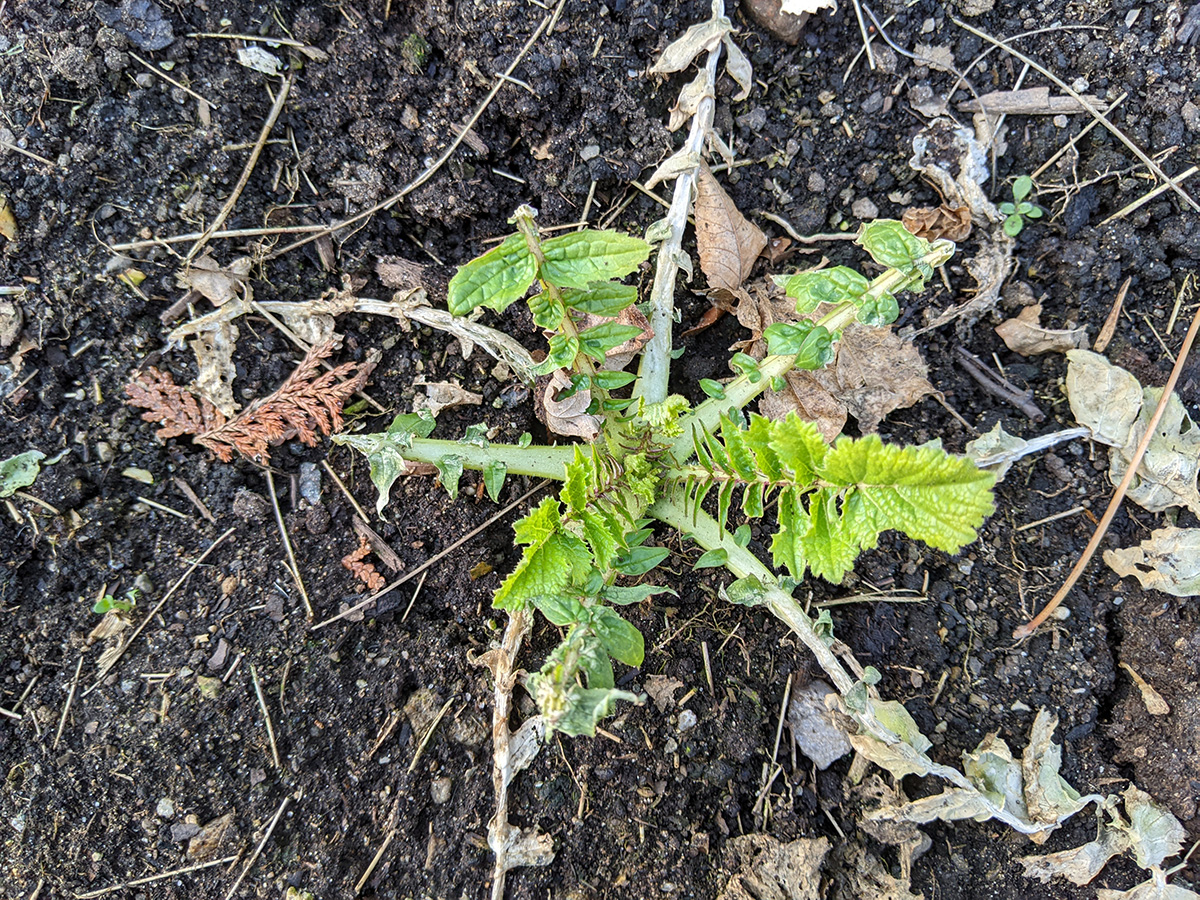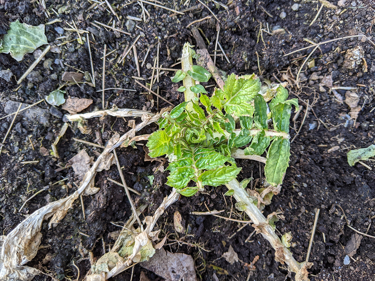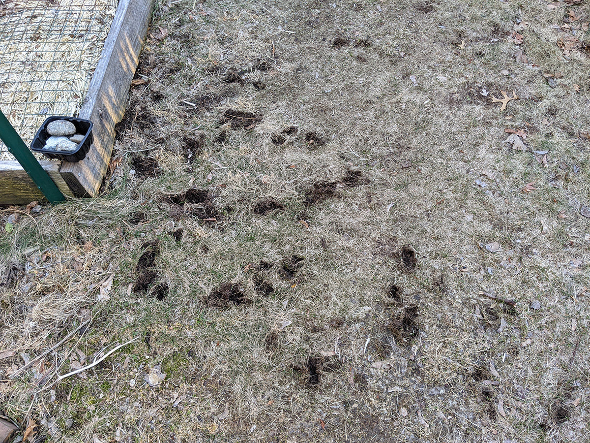 on the western side of the yard, perennial bulbs are starting to push out of the ground. the daffodils we divided and replanted in a long row are emerging. i saw saw some crocus leaves (though those need to be protected, rabbits love eating them). surprisingly, the daikons are still alive. they're totally not edible now, but even if i wanted to dig them up i can't as the ground is still frozen.