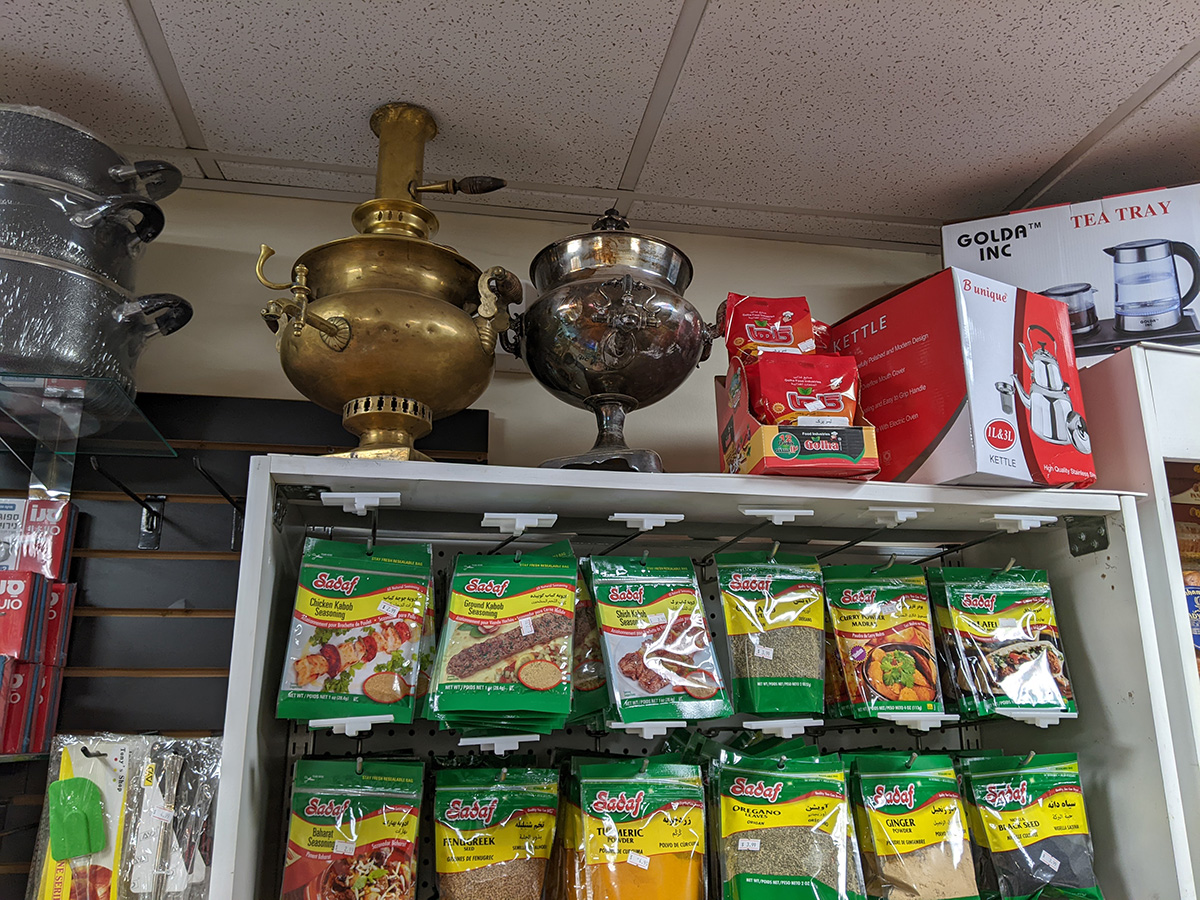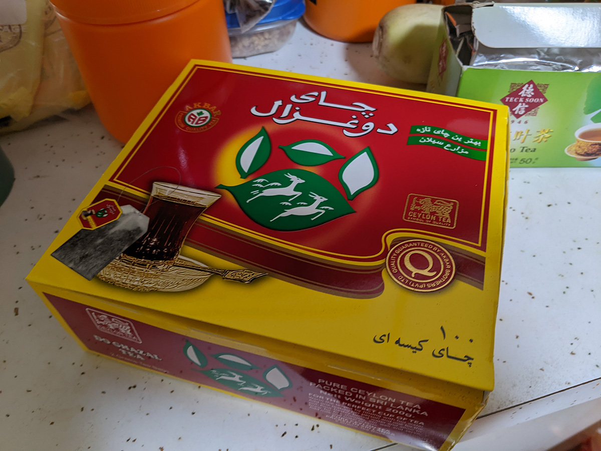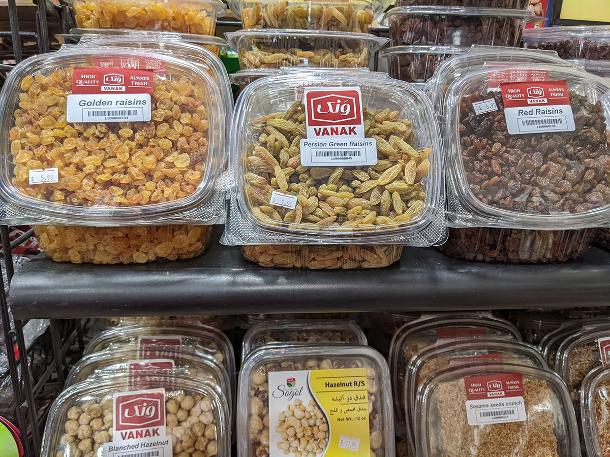 coming back we decided to check out some stores along belmont street, and came across a persian convenience store (super vanak). we'd actually seen it months ago when we went walking, but that time we forgot our masks so didn't go inside. this time around we did bring our masks and paid the place a visit. they'd just opened back in october, so just 4 months ago. it wasn't just a convenience store, more like a mini supermarket, with some fresh produce, dried goods, and frozen foods. it was a lot bigger inside than what we saw from the outside. probably about a good 90% of the stuff there we'd never seen before. my mother bought a box of do ghazal ceylon tea (100 teabags) for $10. neither of us had any cash (just credit cards) but i remember i always carry an emergency $20 in my cards so she was able to pay with that.