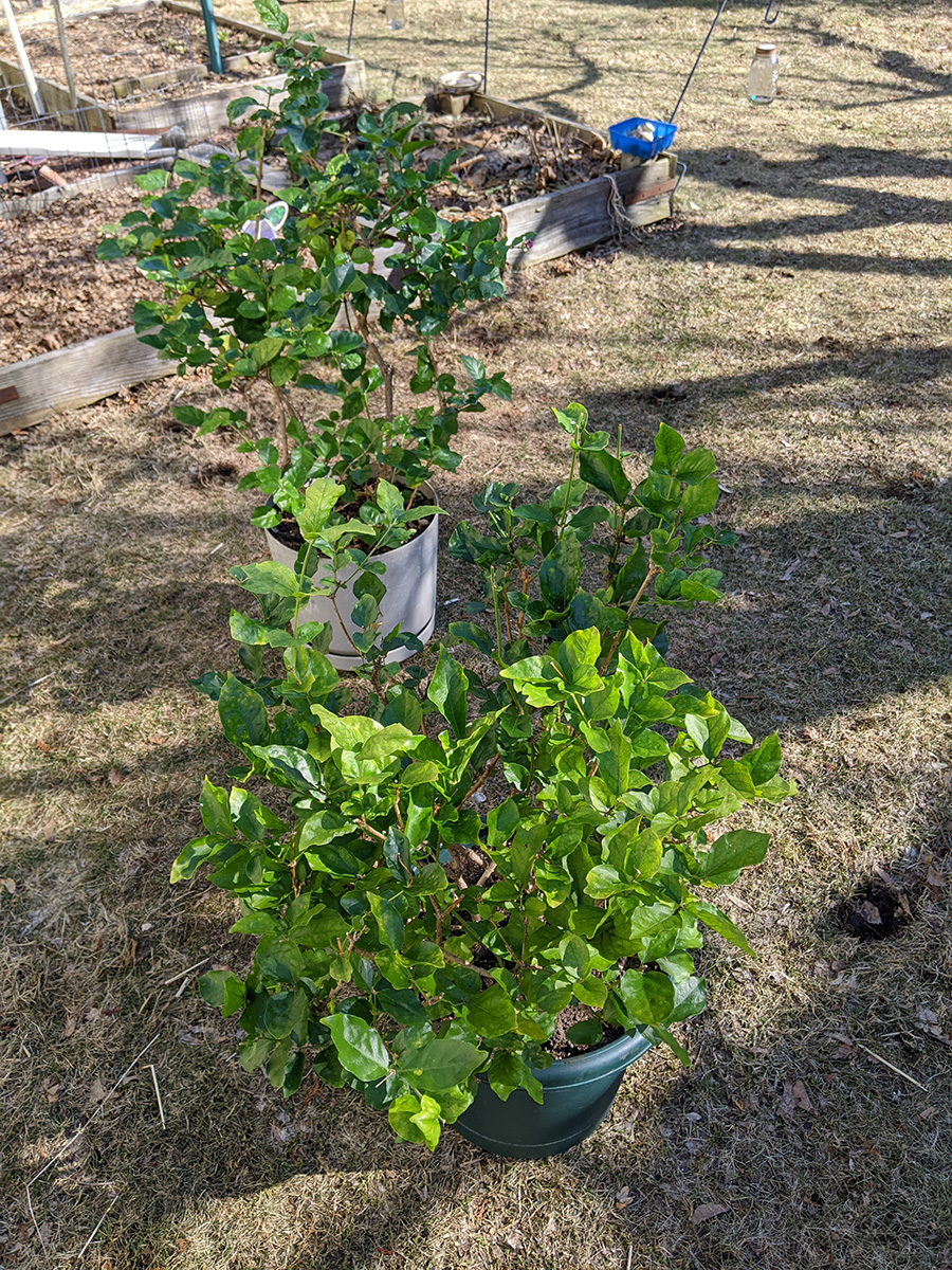 since it was so warm outside, i brought out some potted houseplants so i could spray them better with neem oil. the mealybug affected jasmine, and a floor jasmine that i noticed also had some mealybugs. i sprayed the hell out of both of them, let them drip dry briefly outside, before bringing them inside. our fudingzhu osmanthus continue to lose leaves, at this rate it will be completely defoliated once winter is over. but good news is the plant itself is not dead, and no buds continue to appear on the stems, could either by leaves or flowers (hard to tell), but those are promising signs. finally i watered the plants, another mosquito bit soil drench.