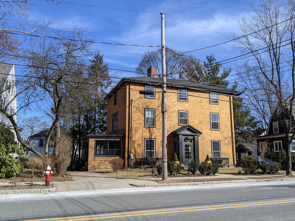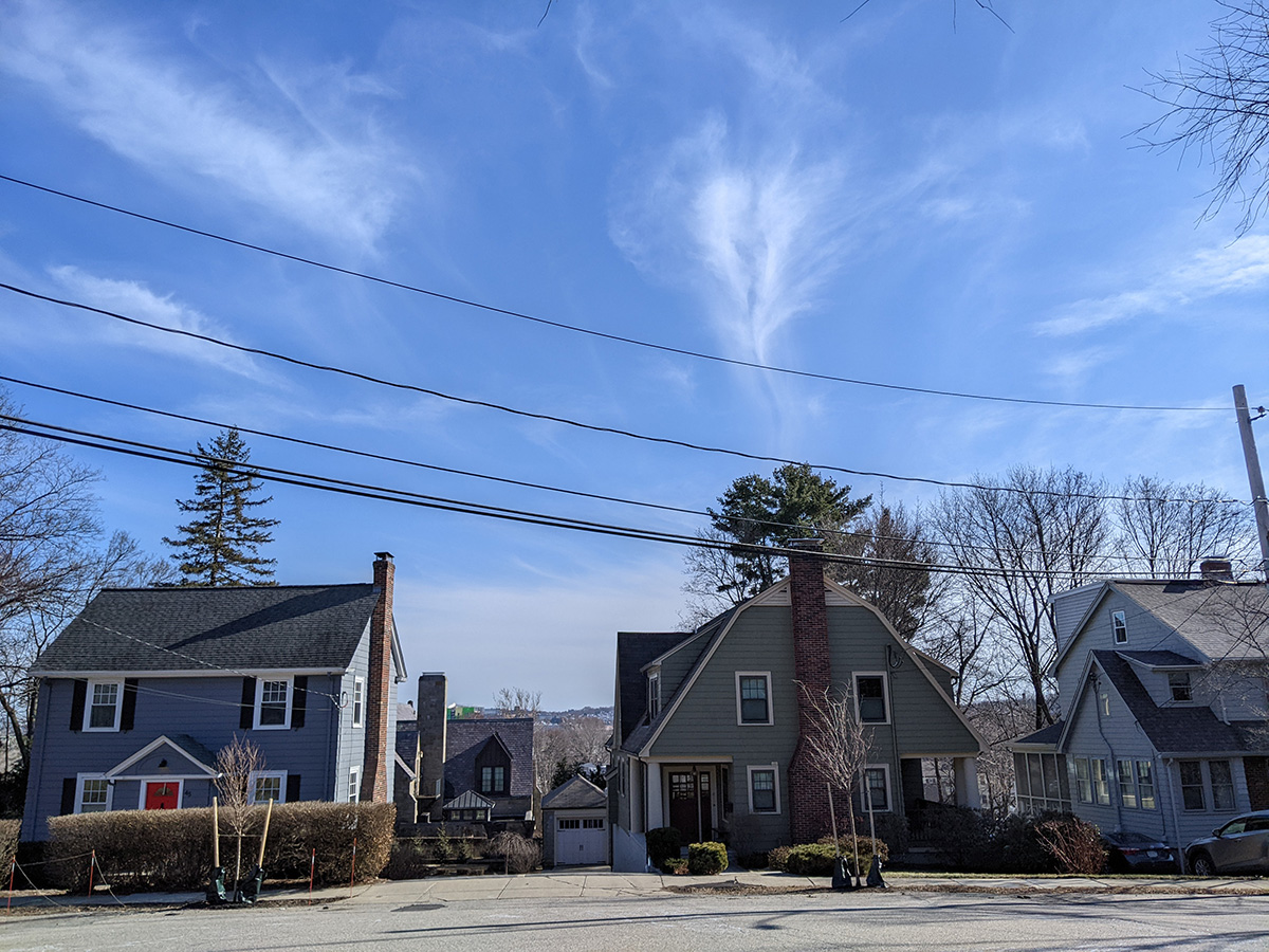 because of the nice weather, i knew my mother would go out for a walk so i went with her in the afternoon. she always take the same route but i'm more adventurous, and decided to go up to watertown hill to see some of the fancy houses. walking may be the slowest form of transportation, but it's the best for exploration. even though temperature was still only in the 50's, i went out in just a t-shirt. it was warm in the sun, but a bit chilly in the shade, though thankfully we were in the sunlight for most of the time. we went up to flint-gay-sunnybake, followed by shattuck-adams, coming back along mt.auburn-school street. originally we thought we might try walking down to watertown mall target but figured it was too far away, even though by that point we were already 2/3 of the way there.