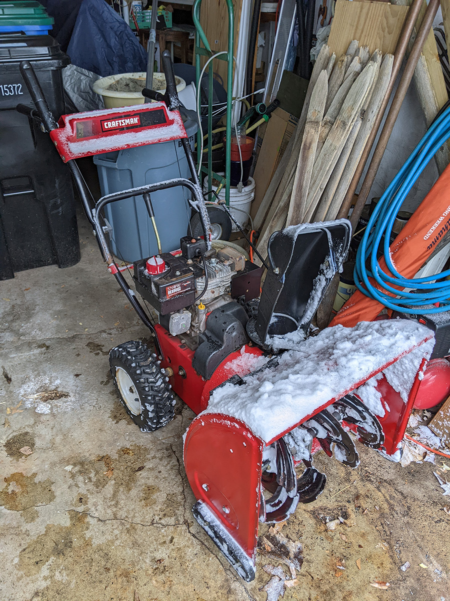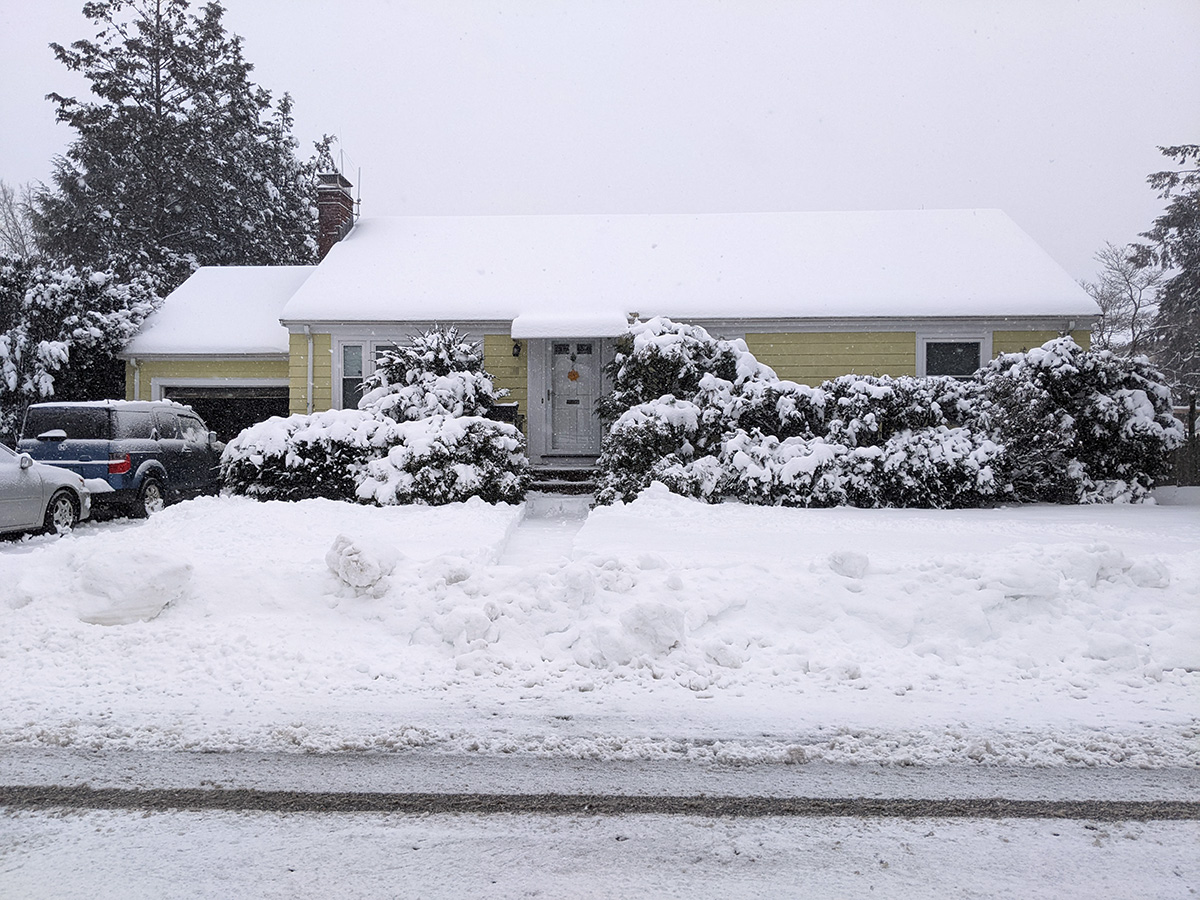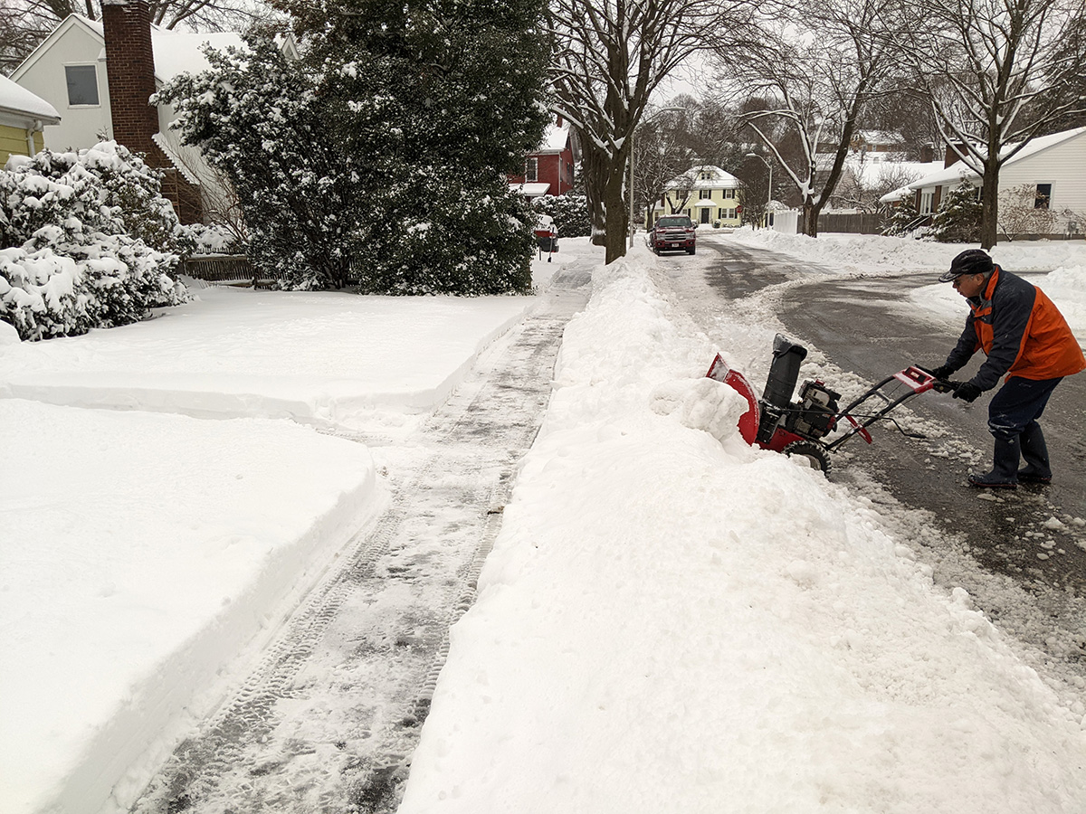 while i was doing that, my father was back outside reclearing the sidewalk with the snowblower. by 4:30pm the bulk of the snow had stopped.