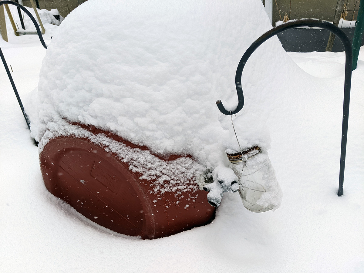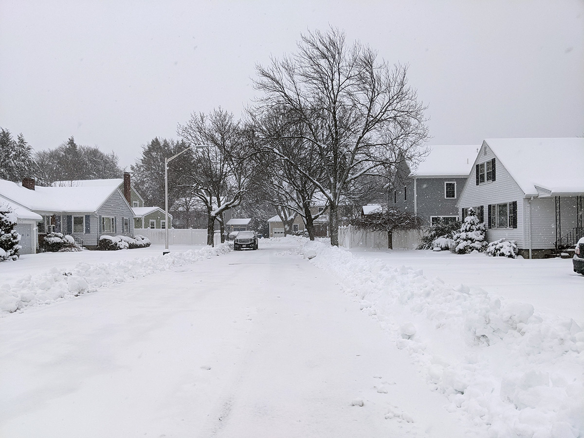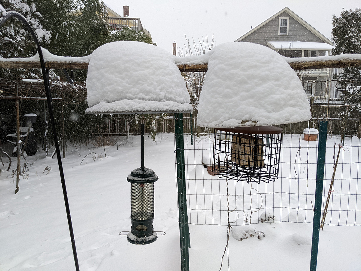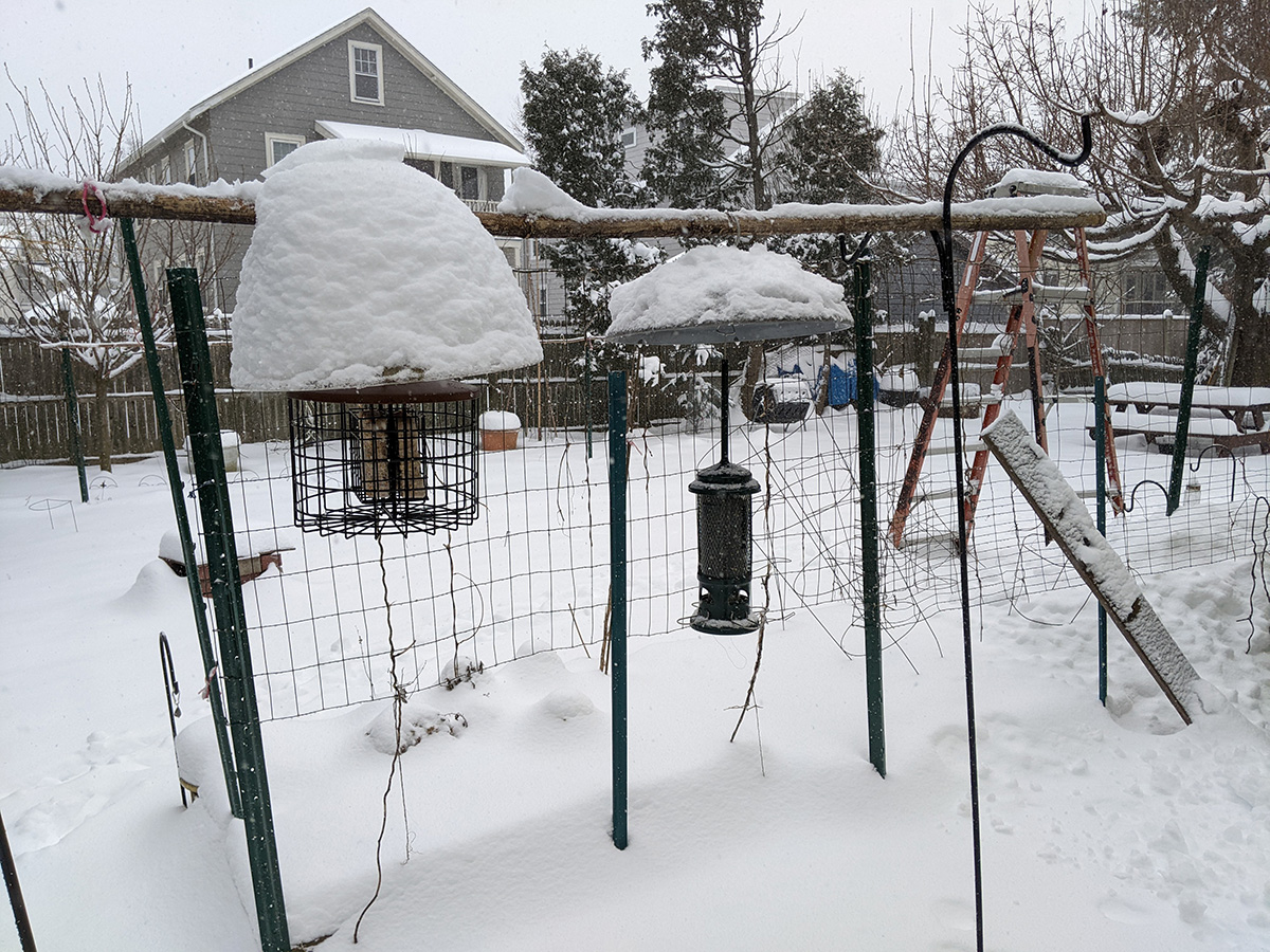 while i was doing that, my father was back outside reclearing the sidewalk with the snowblower. by 4:30pm the bulk of the snow had stopped.