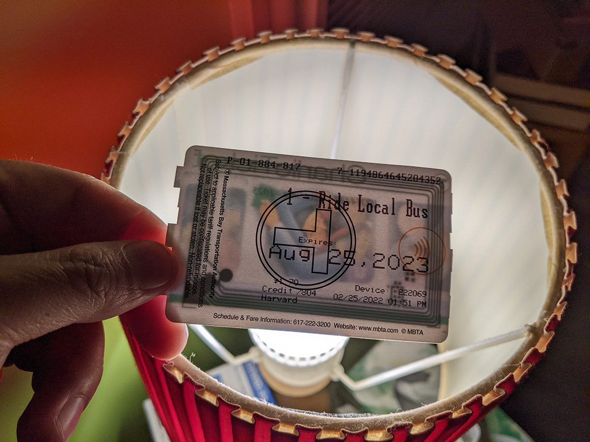 then i remembered i had my phone. my phone which has NFC google pay. would the MBTA ticket machines accept contactless payment? there was only way to find out. so i hurried back to the bank of machines, and sure enough, there was contactless. i had to act fast, since the 73 bus was due to arrive any second now, if it hasn't already. i went through the options trying to figure out what i wanted. the default option is to buy a single subway trip, but i wanted the bus. so i had to go through more options before i found the single bus trip. the cost was $1.70, i tapped my phone and paid, the machine dispensed a paper ticket. this is the second time contactless payment has saved my ass in the past 2 weeks, i'm 100% aboard the contactless express.