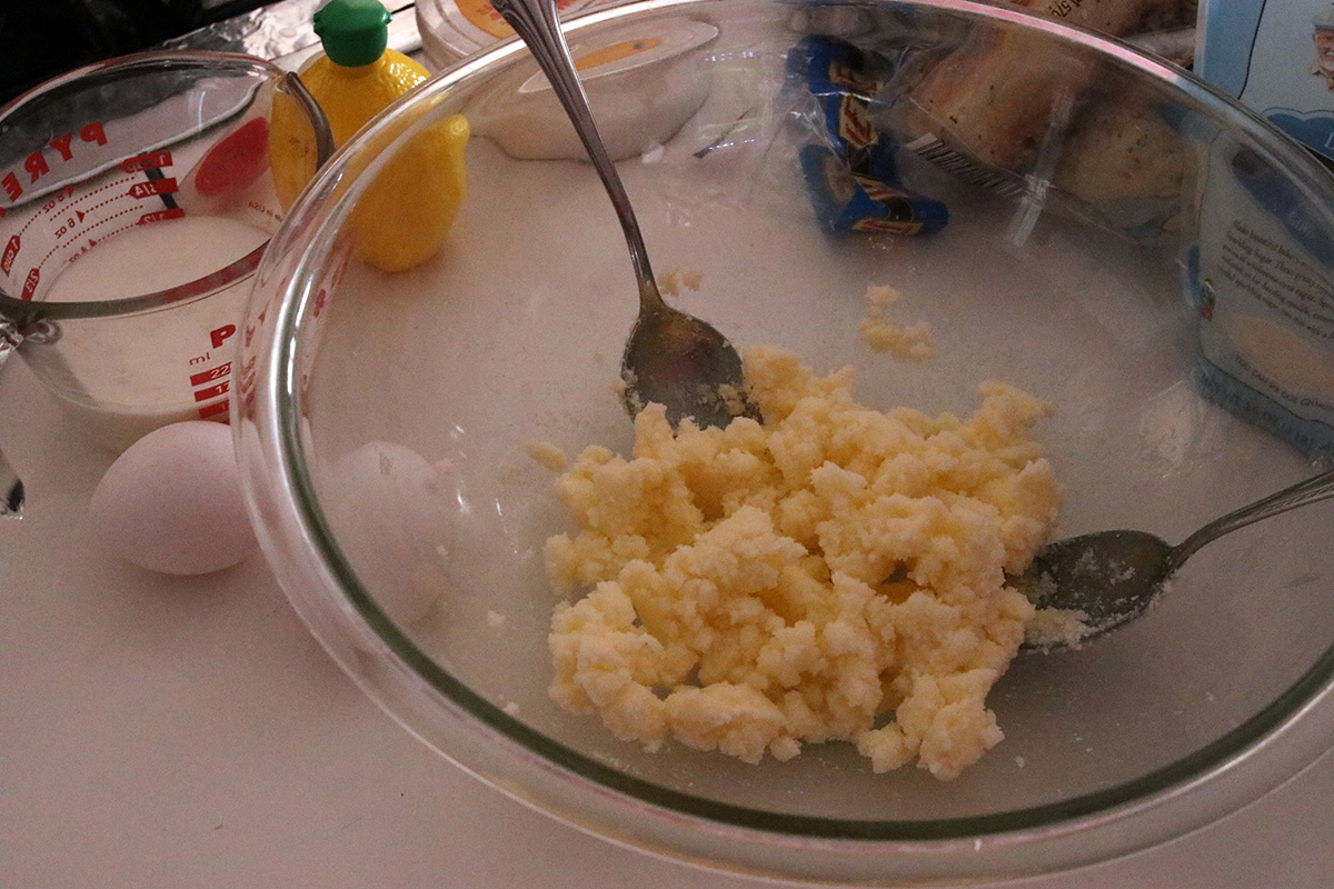 1 stick salted butter, thawed 3/4 cups sugar 2 eggs 1 tsp vanilla extract 1 tbsp lemon juice |