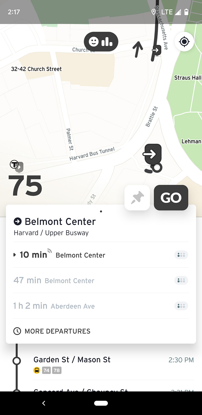 i checked my transit app, which told me the 74 bus to belmont would arrive in 6 minutes. not knowing when the next 73 would arrive,