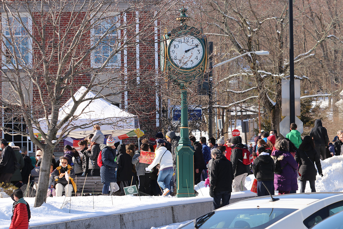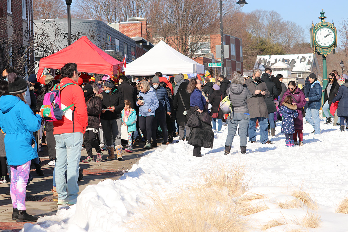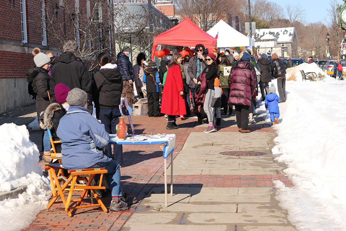 think of how many chinese people have to live in belmont for them to be able to have a chinese new year celebration in the town center. it was a little lackluster though, just some tables set up with crafts for children, free snacks, and then the other tables were local businesses trying to attract chinese customers. they had it front of belmont's savings bank, and there were just a big crowd of people outside. there was also supposed to be lion dancers, but after we circled the tables twice (and collected some snacks and freebies like a mug and some toothbrushes), we decided to leave.