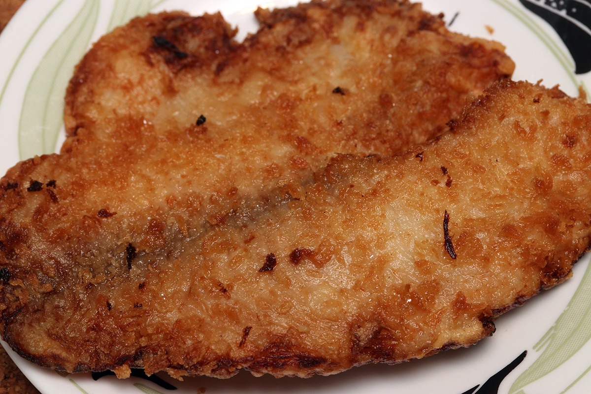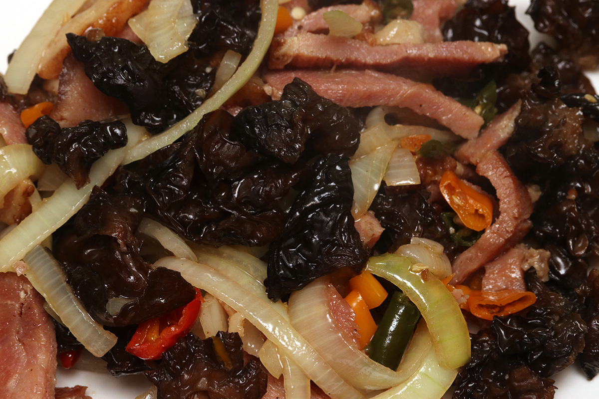 for dinner my mother cooked up a spicy wood ear & ham stirfry and a spicy salad. my father fried up some breaded fish.