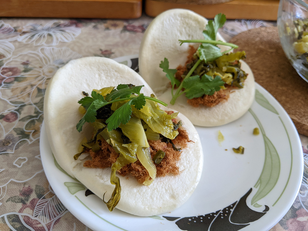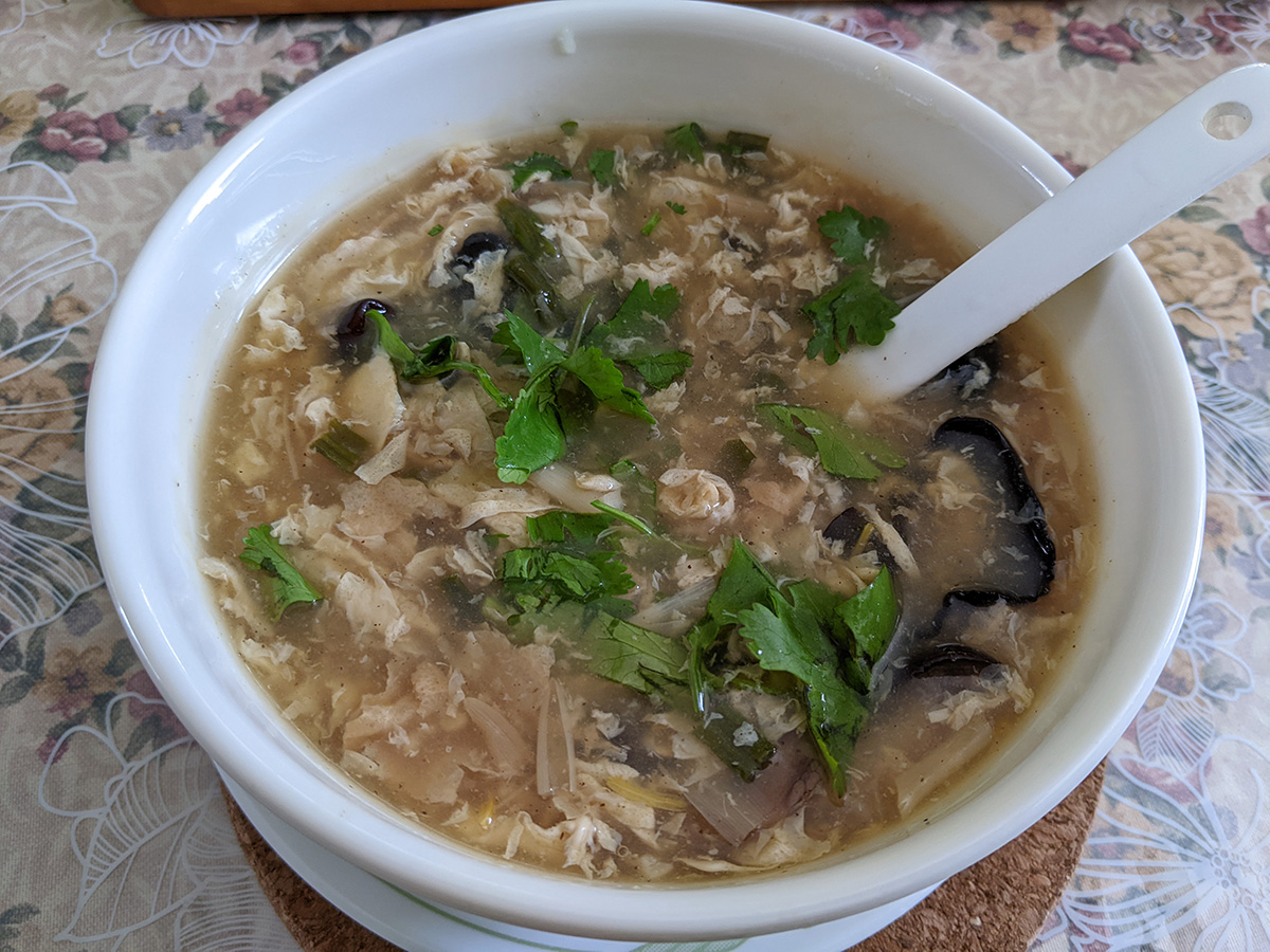 i had some leftover hot and sour soup and leftover mantou with pork floss and pickled mustard green for lunch in belmont.