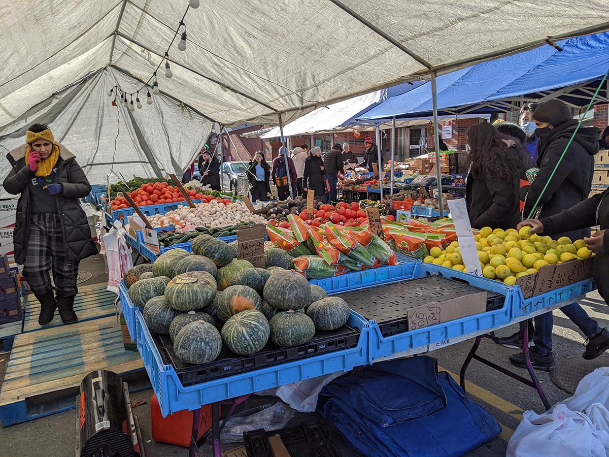 i swung by haymarket. i haven't been there since early december, so i was overdue for a visit. it was also my first visit of 2022. there's not much to be had there during the winter, and depending on the weather, sometimes you run the risk of buying cold-damaged produce. a lot of vendors had set up draft curtains around their tents, so you couldn't see inside unless you went inside the tents. my haul: 5 blood oranges ($2), 3 bags of mini persian cucumbers ($3), 1 lbs. of ginger ($2), 2 boxes of strawberries ($2), 2 sleeves of turkish garlic ($2). the big boxes of navel orange vendor wasn't there, a few other sellers had oranges, but i was already carrying so much stuff, i couldn't buy any more.
