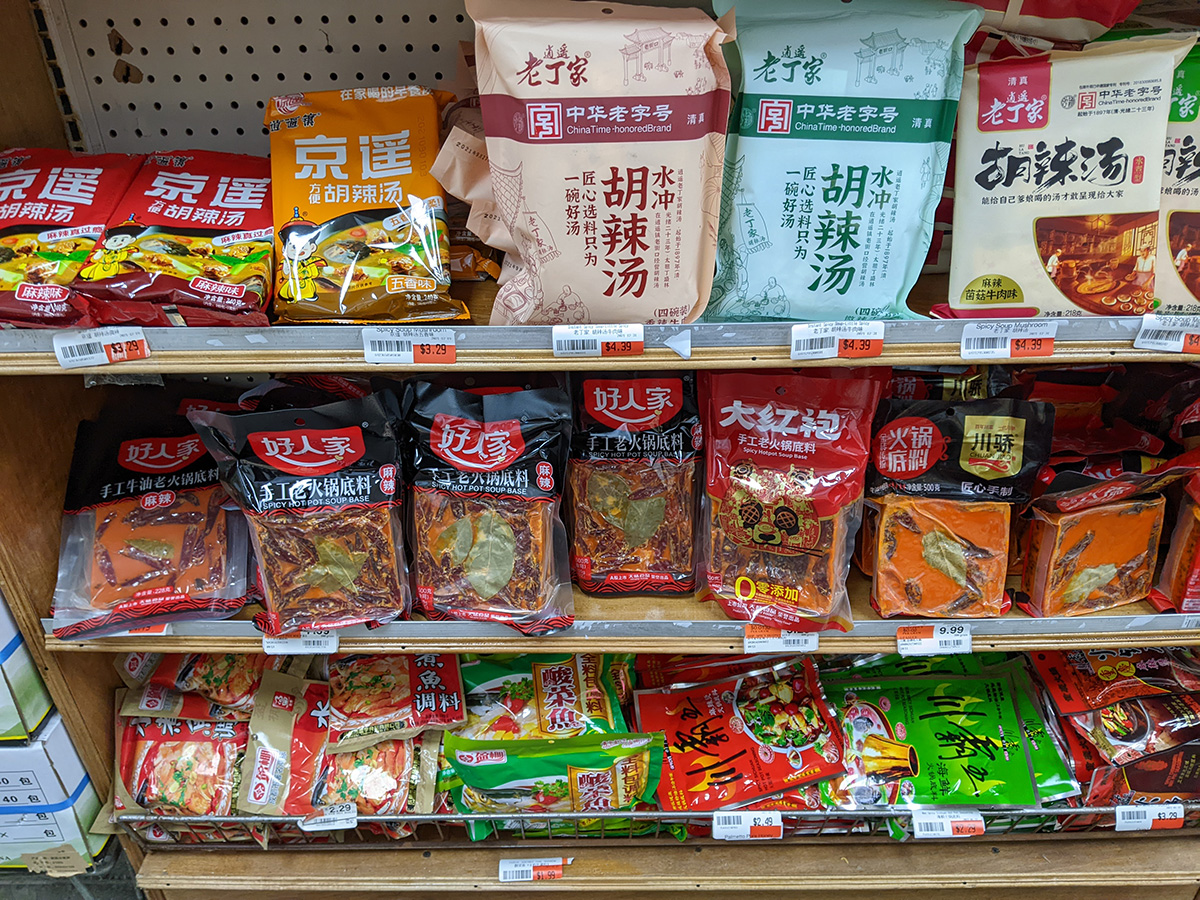 i went to ming's market first, to get a few things, before swinging by c-mart. however, i ended up getting so many things at ming's market, i didn't need to go to c-mart (i had too much stuff anyway, it would've been very inconvenient). a few things i was searching for they didn't have: angel rice leaven, taiwanese brand osmanthus syrup, zhoujunji-brand hot pot base, tonkatsu sauce. i left ming's by 2:15pm.