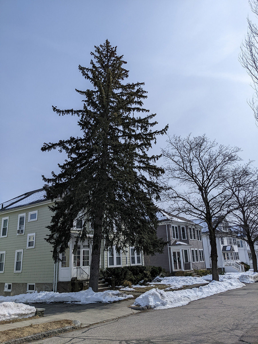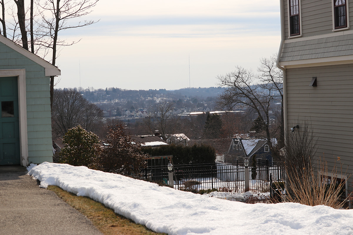 although the temperature never broke 40 degrees, it was still a nice day with plenty of sun, so my mother and i went out for another walk. we'd go over watertown hill, and then travel down mt.auburn street in the direction of watertown center to check out some persian restaurants i saw on the map.