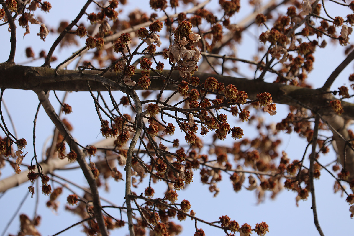 we came across a crabapple that still had most of its berries, juicy red ones that looked too delicious to pass up. i tried one, it tasted a lot like chinese hawthorn, sweet and tart. my mother said the same when she tried a berry, and picked a few for my father to try.