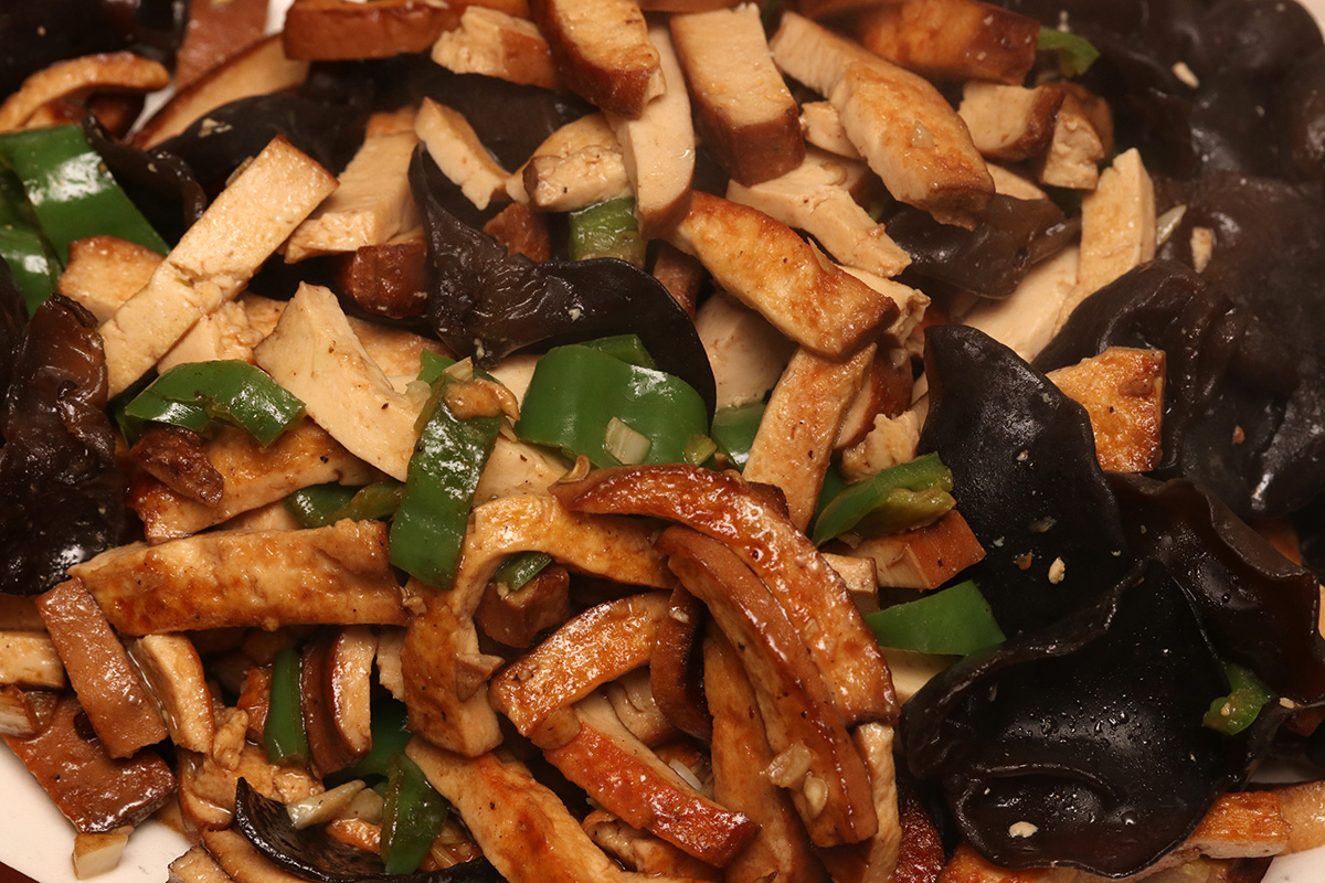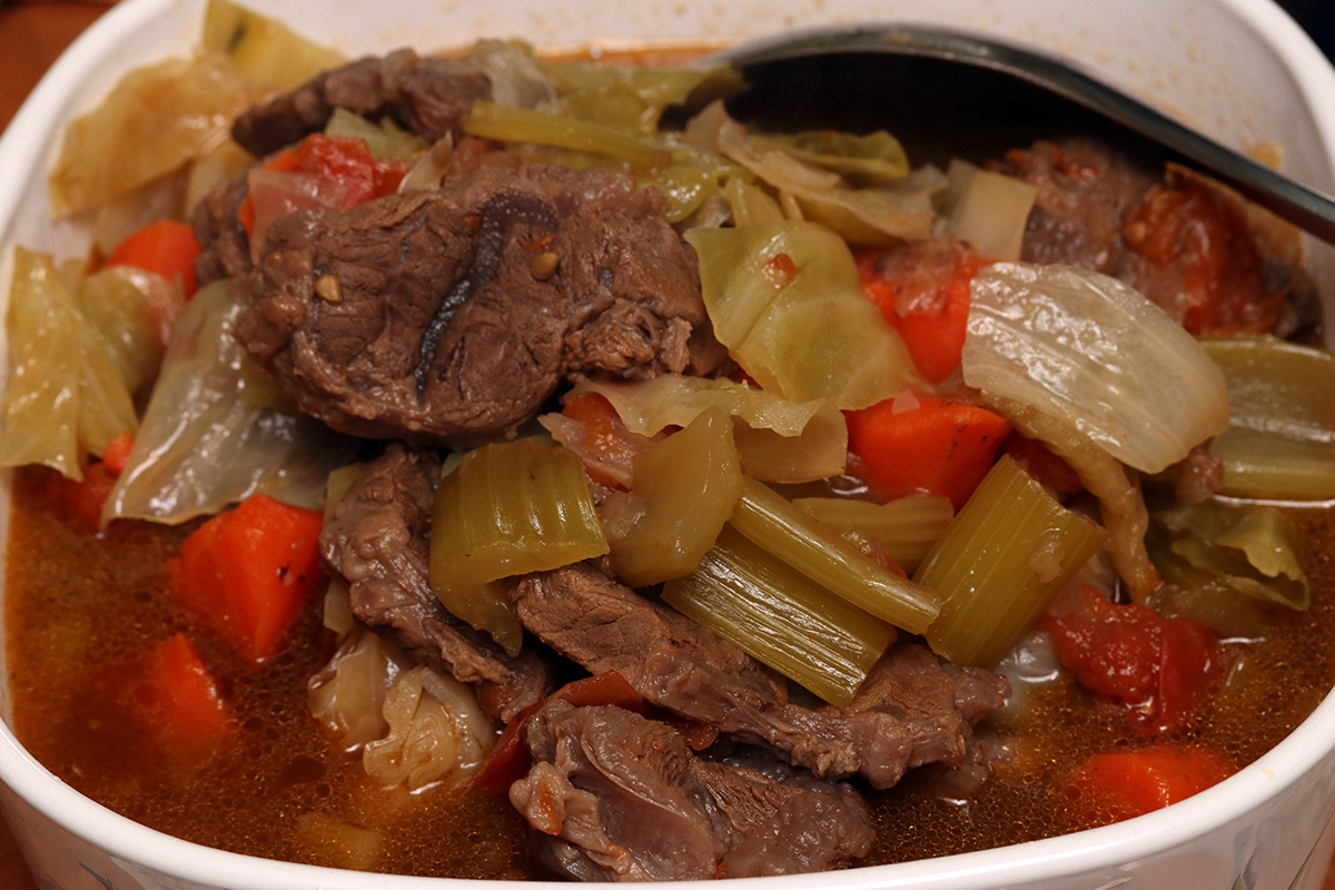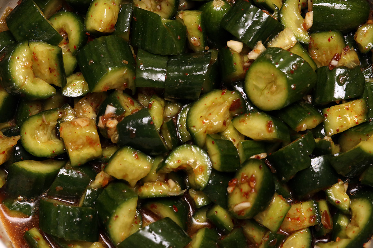 dinner came in the form of a beef shank stew my mother had been simmering on the stovetop all day long, combined with some cabbage and carrots. she also made a tofu wood ear hot pepper stirfry, and had me make a bowl of smashed cucumbers with the little persian cucumbers i got from haymarket for $1 a bag.