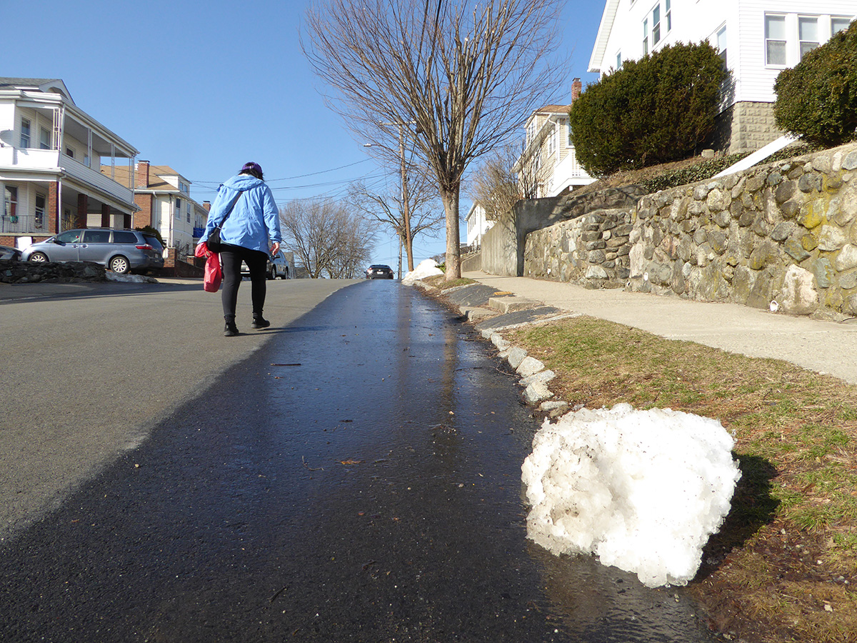 it was still 55 degrees when i rode home. the streets were wet not because of any rain but because of all the snowmelt. it made me cautious because i was afraid of slipping on some black ice, but black ice doesn't form when the weather is above freezing.