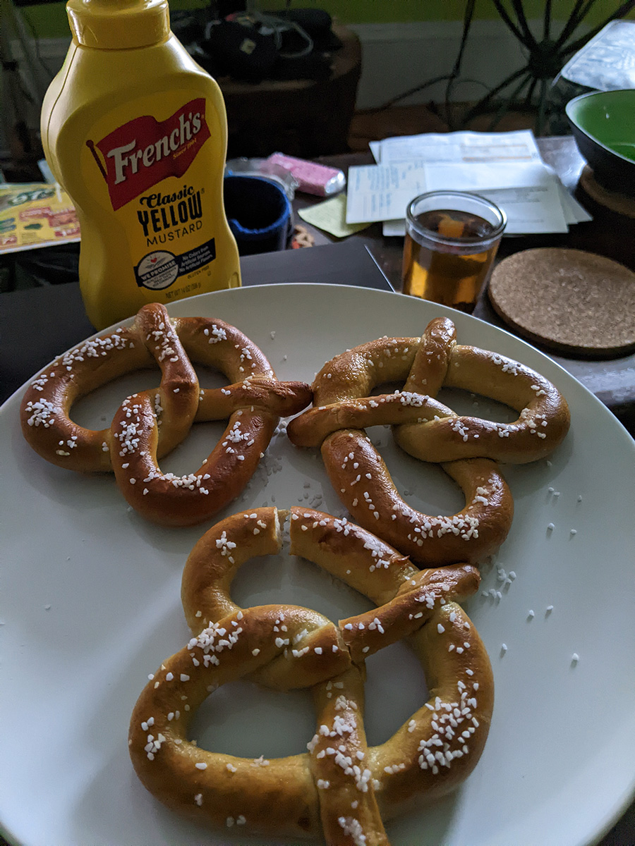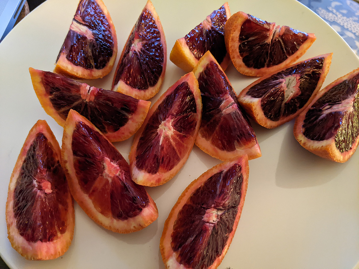 in the late afternoon i baked a few soft pretzels in the toaster oven. for dinner i finished the leftover crispy orange chicken and rice, then had some blood oranges. tonight i'm going to sleep with the mi bands on separate wrists, to see if that'll make any difference in the sleep data accuracy.