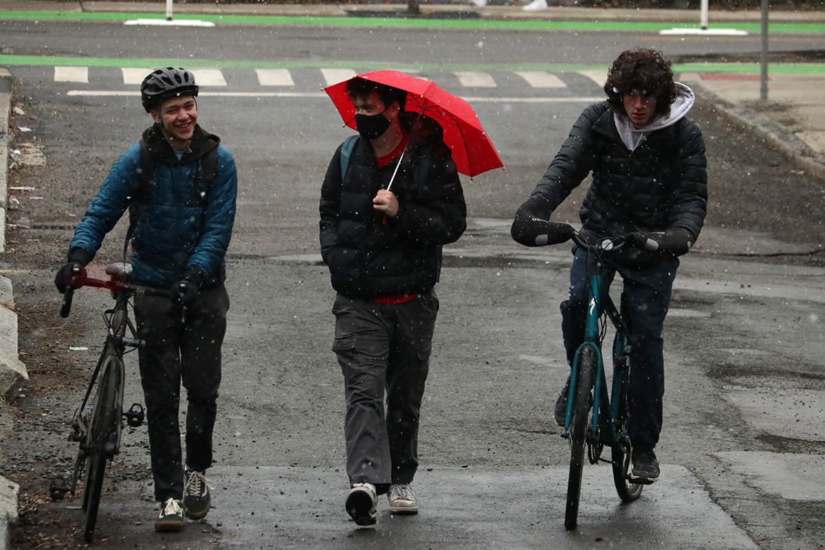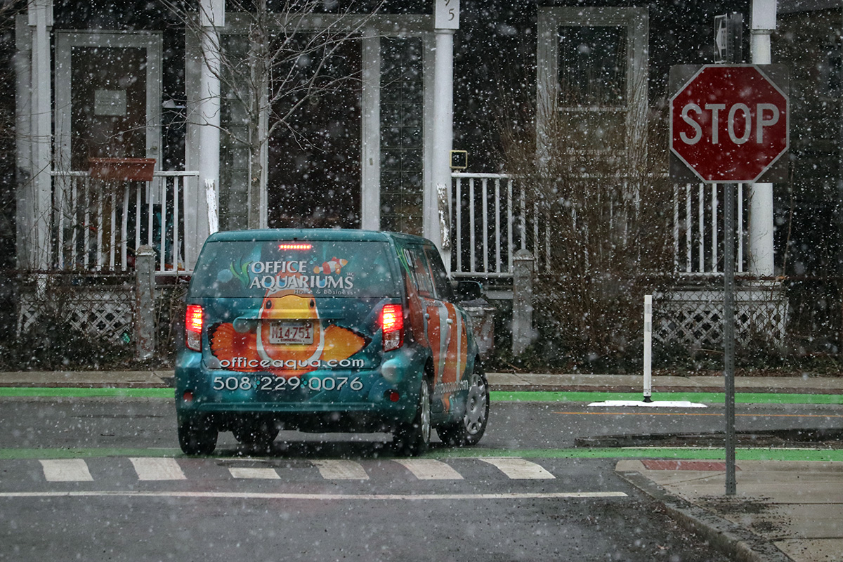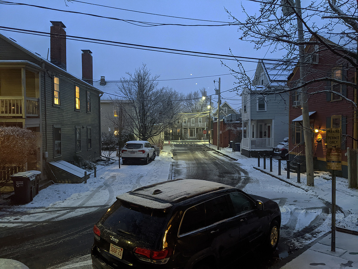 this day was about waiting for the snow to arrive. by the afternoon it was flurrying, but temperature was still 40 degrees so nothing was sticking. as the day wore on though, temperature started to drop, so by evening - when the snow finally stopped - we had less than a centimeter of accumulation on the ground. all that is going to melt though, as the temperature for the next 3 days will all be in the 50's. in fact, the weather seems to be transitioning now, and the long range forecast shows mostly 50+ days for the next 2 weeks. this may in fact be our last snow of the season.