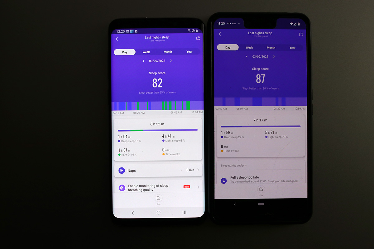 i woke up this morning to check the sleep data on my two mi bands. i'd turned on enhanced sleep monitoring last night, so i was curious to see how much more accurate it was. the mi band 6 gave me a new set of data - REM sleep - which the mi band 4 doesn't have. it's a little troubling that the data doesn't quite match up though. either one of the bands is inaccurate, or maybe they're both inaccurate, and both data are garbage, as accurate as astrology.
