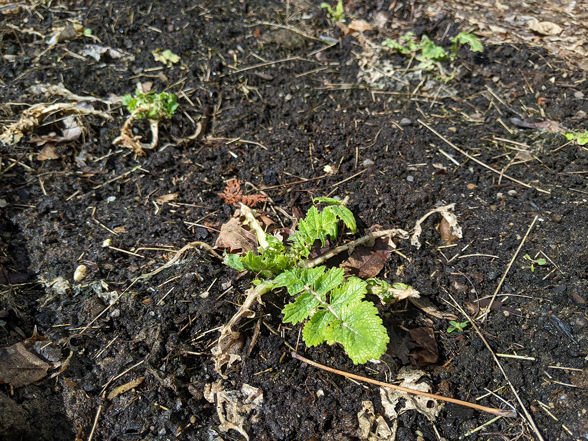 i also did a backyard inspection. there was one set of rabbit prints, but i still have no idea how it's getting in. once the spring season is in full swing, we'll take another careful survey of the backyard perimeter to check for openings. places like under log piles could potential have hidden holes were rabbits are getting in.