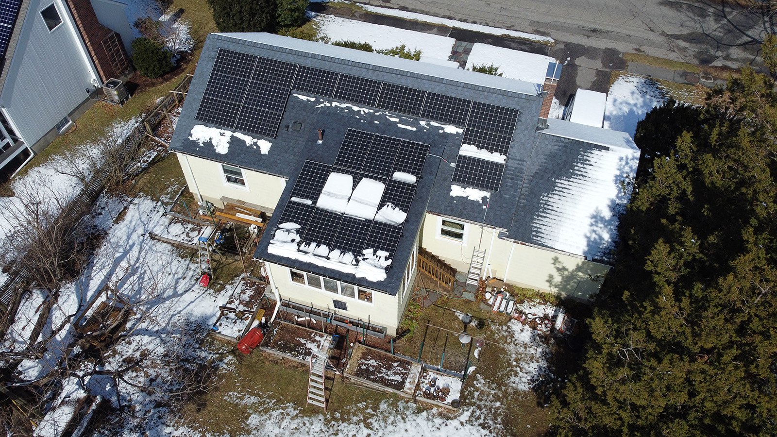 it snowed a tiny bit last night but it was all due to melt today as the temperature would reach the 50's. from the solar edge monitoring app i could see our solar panels were still covered though. so i left a bit after 10:30am for my parents' place so i could clear the snow off the panels. i sent the drone in the air briefly so i could get an idea of how much snow there was still on the panels. most of the snow from the main roof panels had melted, it was just some sun room roof panels that needed clearing. as for our neighbors, virtually everyone else had the snow on their panels already cleared. i made quick work of it, had all the snow off in about 10 minutes. it was even really snow, more like very wet slush, and the black panels were so warm by that point i could actually see the snow steaming.