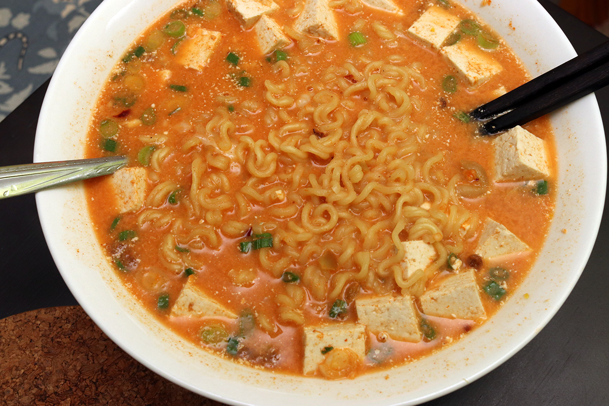 for dinner i made a bowl of luxury korean ramen. i make it all fancy, but it's no healthier than regular ramen.