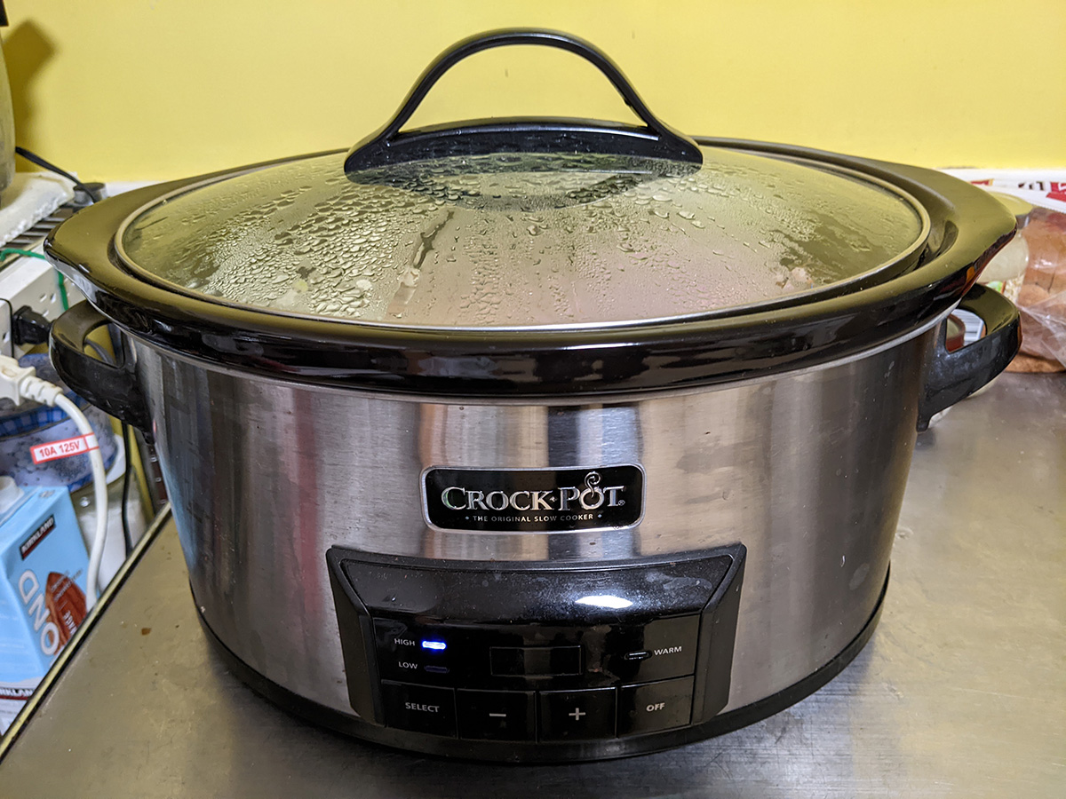 we finally put the corned beef into the slow cooker. the star market signature brand did not come with any spice packet, but fortunately i had own pickling spice. for lunch my mother made chicken noodles.