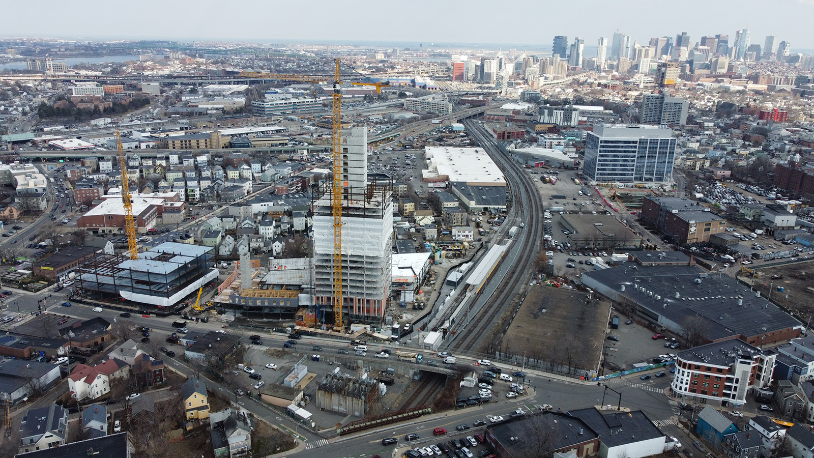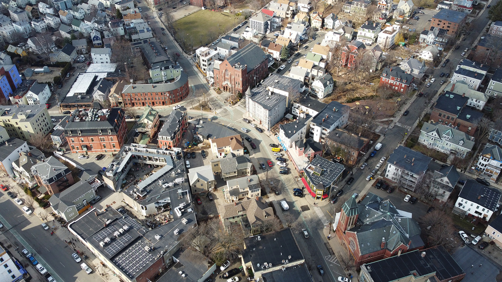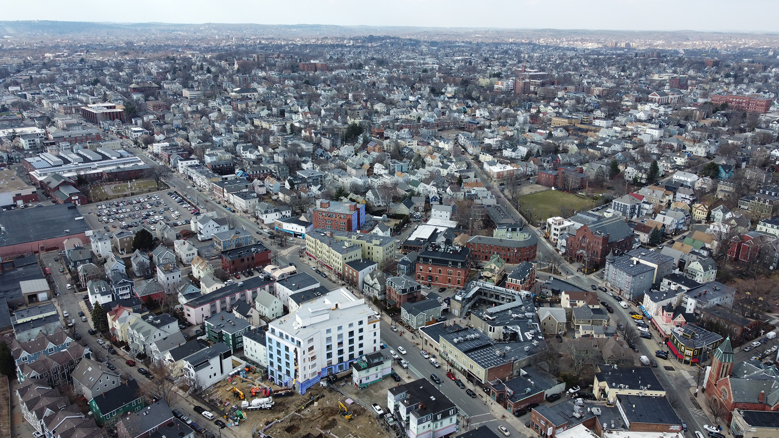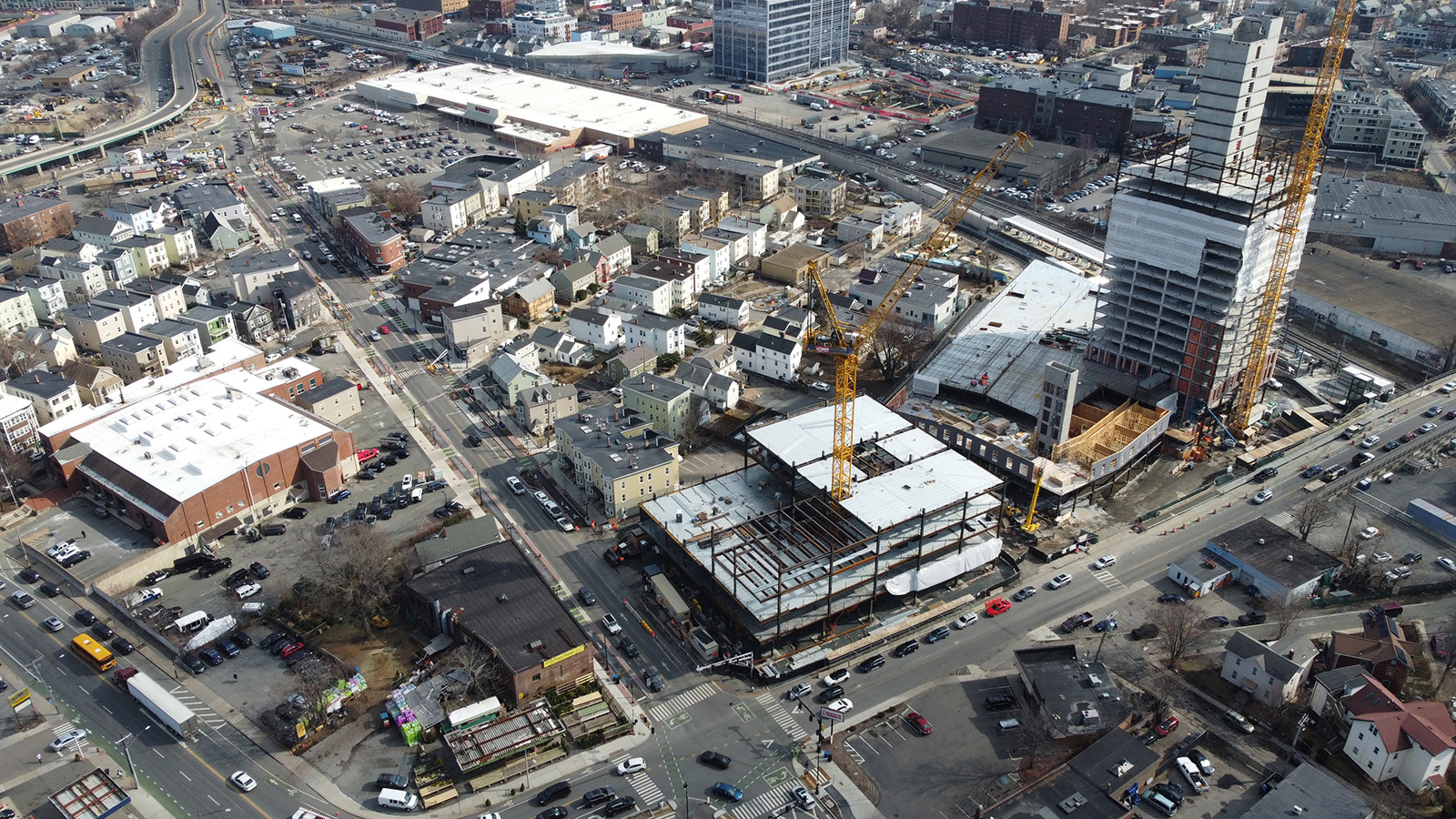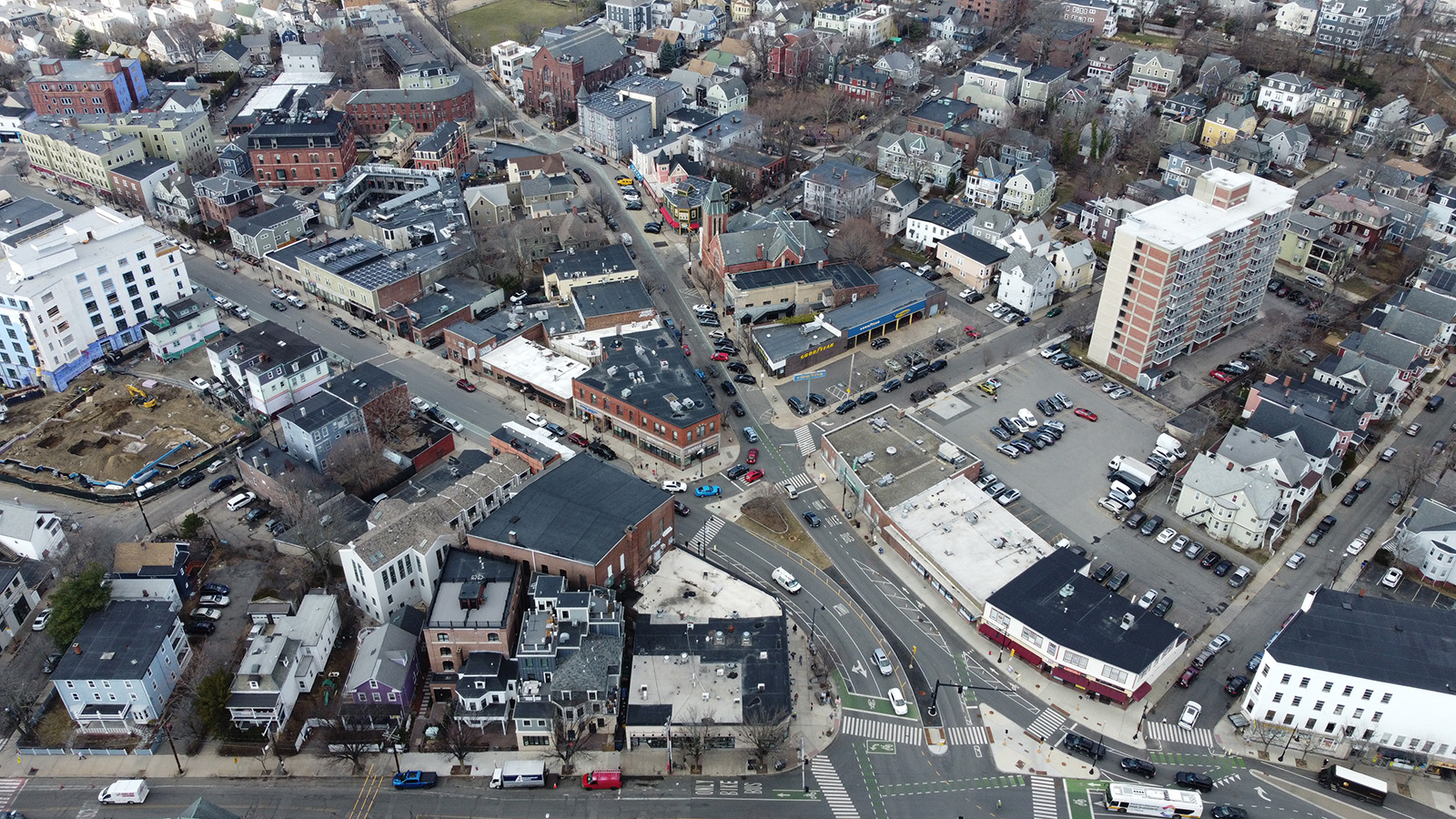 looking for a place to launch, originally i wanted to fly from prospect hill, but i walked down the end of wesley park (a dead end street), and found a spot that looked promising. dji fly app gave me a warning that logan airport was nearby, but still allowed me to ascend to 400ft because i wasn't in a runway pathway. i checked out the new union square MBTA station, which was pretty underwhelming, eclipsed by the nearby high rise constructions. it's hard to shake off the feeling that the new subway station had actually made union square worse, with skyrocketing rents, deep pocket developments buying up properties, displacement of small businesses, and non-stop construction that's affected both businesses and residences. just walking down to union square i was surprised by the number of new constructions.