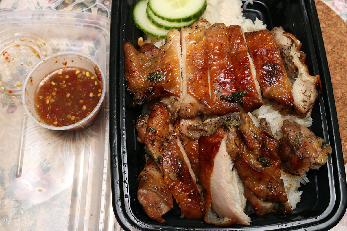 my father and i went back to my parents' house. my mother wasn't in the mood for cooking and said we'd get thai chicken rice for dinner. i ordered online around 5:45pm, we went to go pick up the order 10 minutes later. second time around was just as good. instead of sweet chili sauce, they gave me a spicy ginger sauce this today, which was okay, but still not as good as the fish sauce hot sauce blend that comes with the roasted chicken.