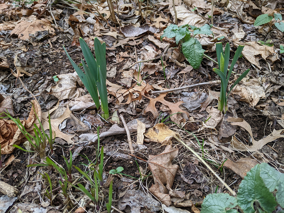 today is actually the first day of spring. looking into the backyard, most of my garlic beds have sprouted; that wasn't the case last weekend, the last time i checked, must've been all that warm weather. monkshood have also emerged, i'm hoping this will be a good year for them after i fertilized the perennial beds last fall. rows of daffodils are also emerging, no flowers yet but just a matter of time.