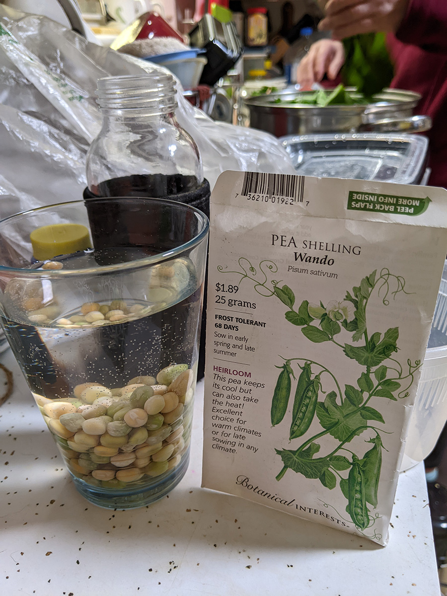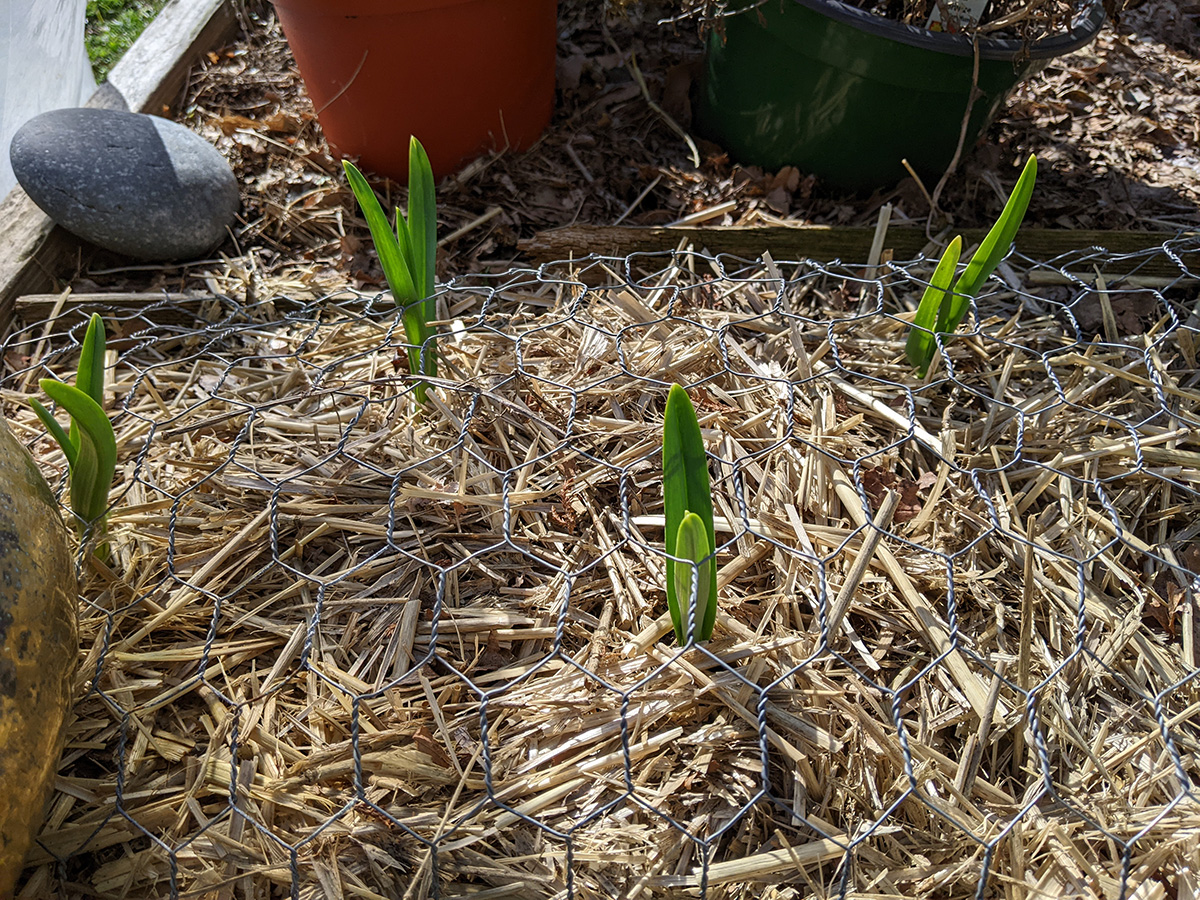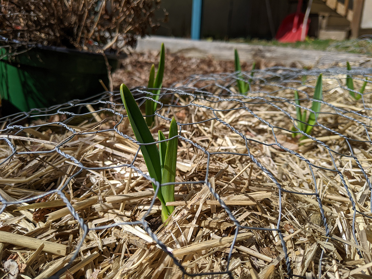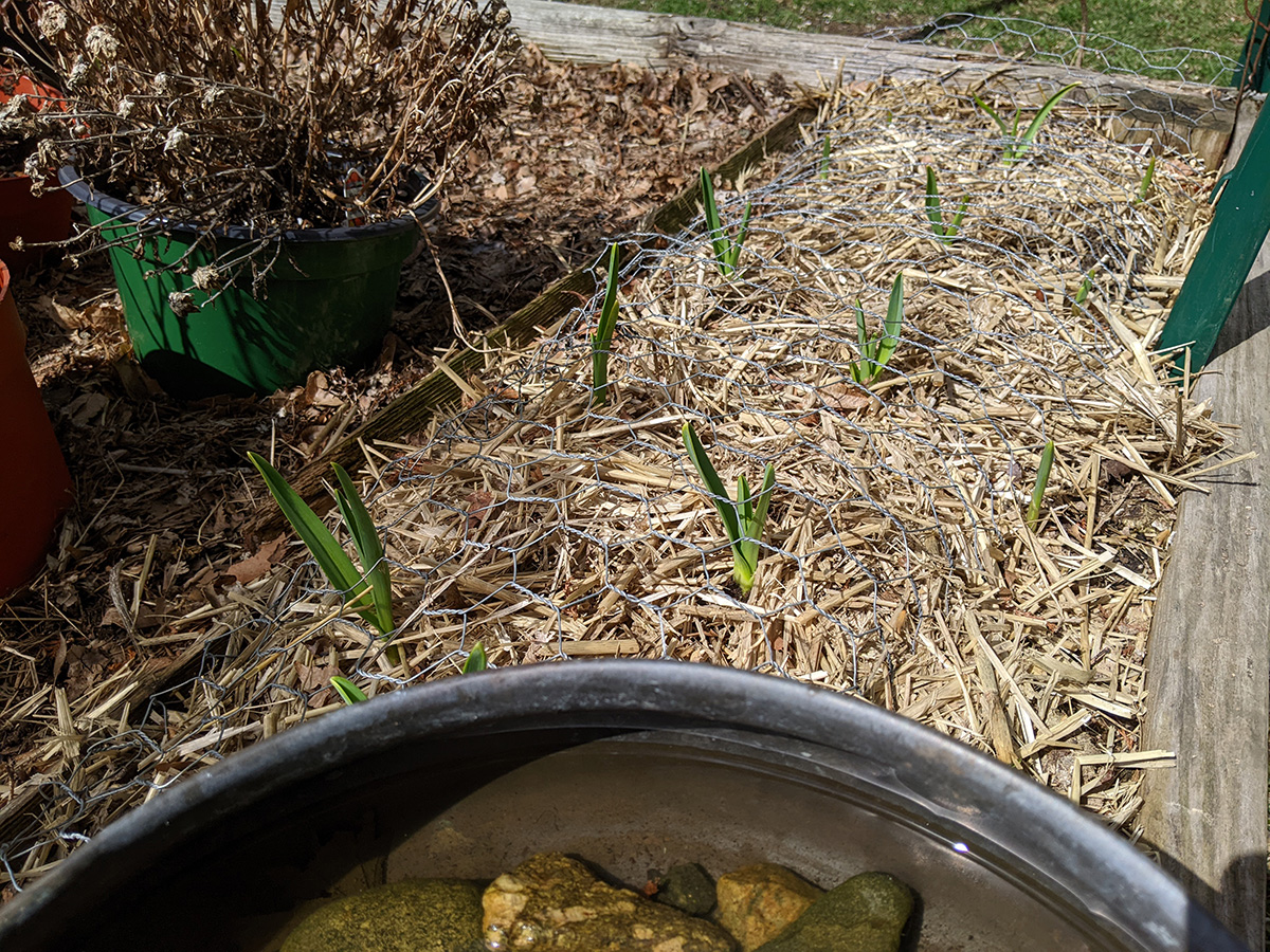 i had some leftover sauerkraut stew for lunch. my father added some sliced lamb into the pot. i then went into the backyard to do some yard maintenance. my sister showed up with hailey, and my parents went with them on a short walk to the park and back. i was busy side dressing all the sprouted garlic with chicken manure granules (blood meal would've been the preferred choice but i didn't have any). it's ironic that i'd be using store-bought chicken manure when we still have 4 large bags of it in the backyard; only reason why i didn't the more natural manure was the smell. maybe when i fertilize the garlic again in a few weeks i'll use the natural manure. the garlics in RB0 are much bigger than in the other beds. RB4 has the weakest garlic sprouts. i wonder if this is because in some of the beds i added raw chicken manure back in the fall? i don't remember which ones i added though, i'll have to check my photos.