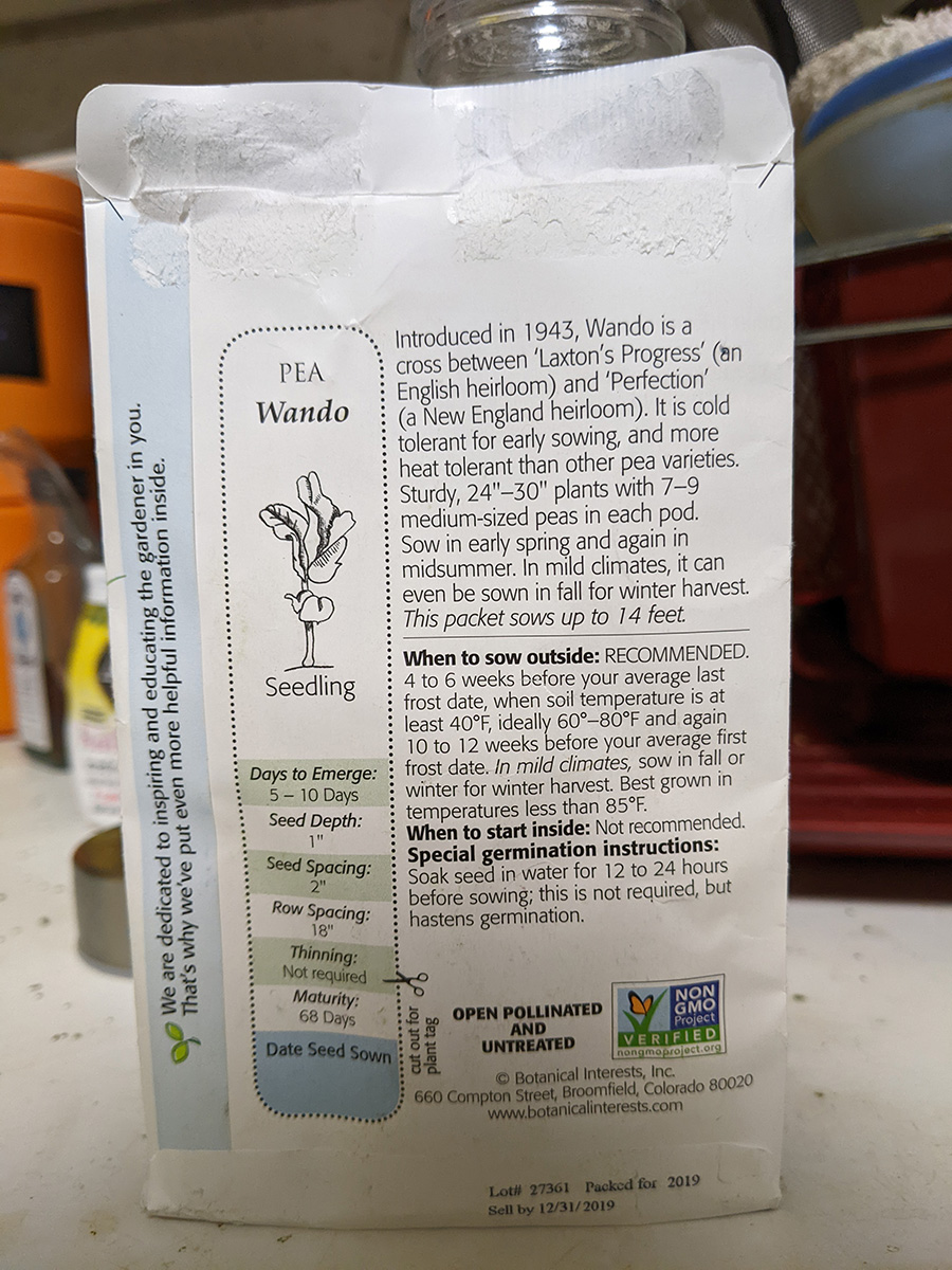 before i knew it, it was already 2pm, which is the time i'm normally allowed to leave since typically the busiest time tapered off by that point. i biked to my parents' house where i planted all the wando peas i had soaking in water overnight.