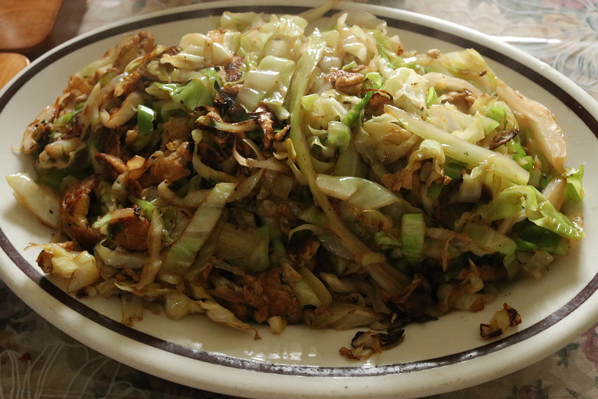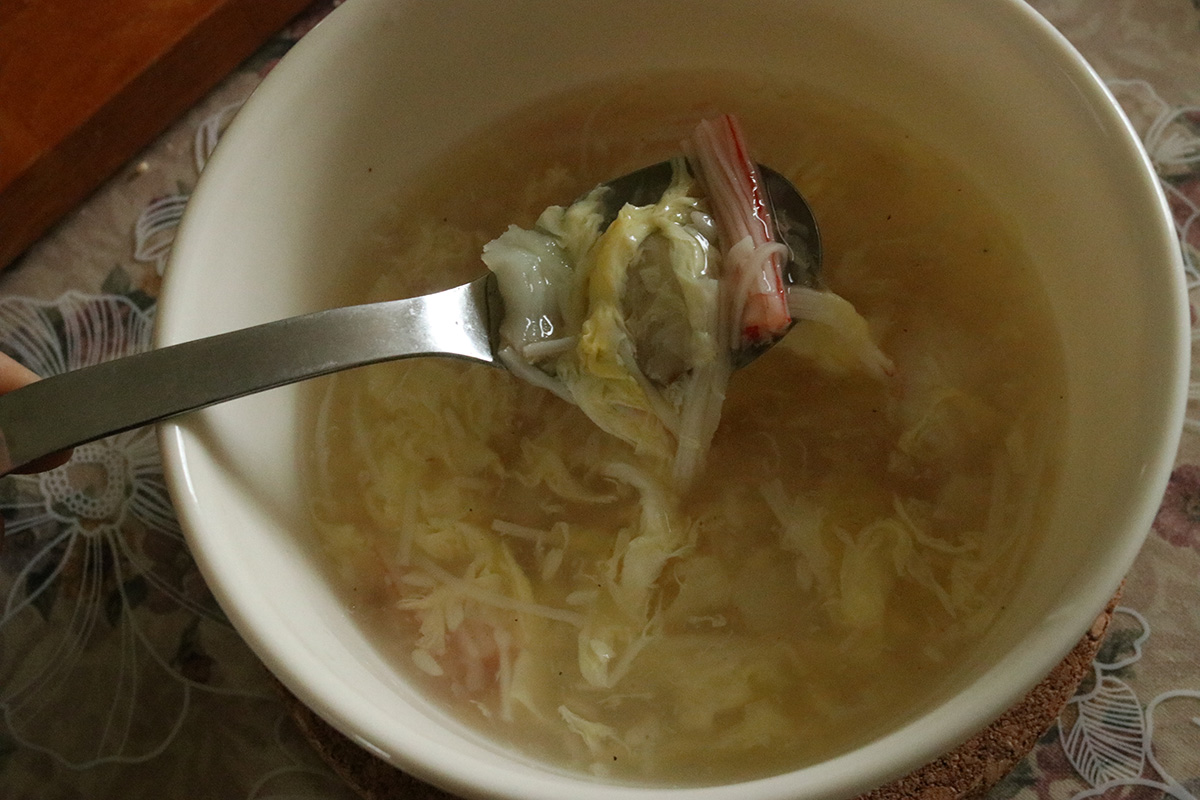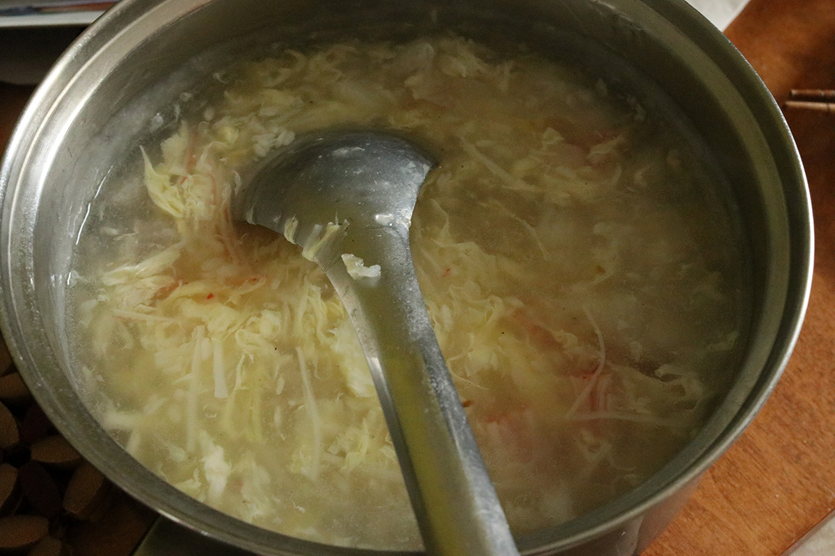 i brought drumsticks but because it was raining, we decided to just marinate them today and barbecue them tomorrow. instead, my father made a fish flake soup with imitation crab and ginger, a stiy-fry cabbage, and steamed some chinese sausages to go with some rice.