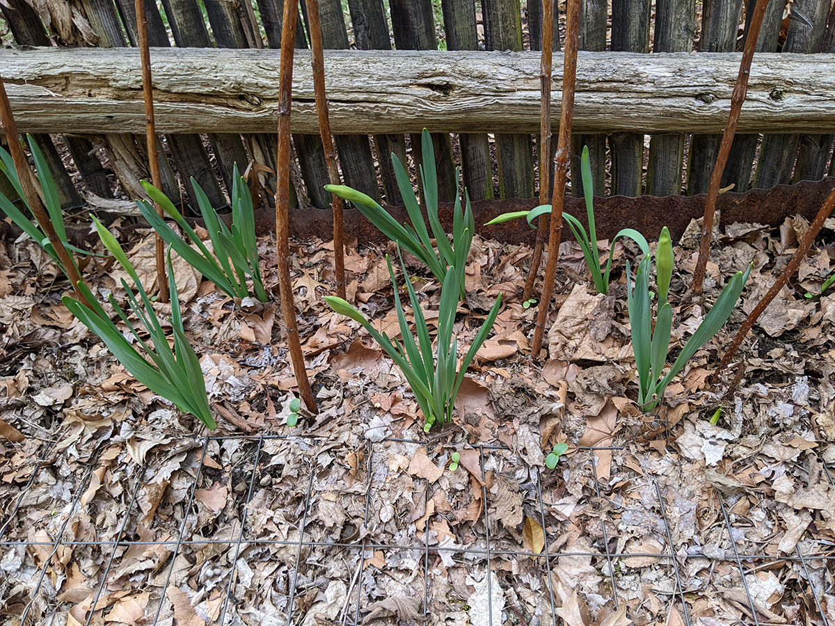 the daffodils barely had flower buds on tuesday but today it seemed they all had flower buds, drooping over the stalks. it was a wise decision to divide the daffodils along with the raspberry canes.