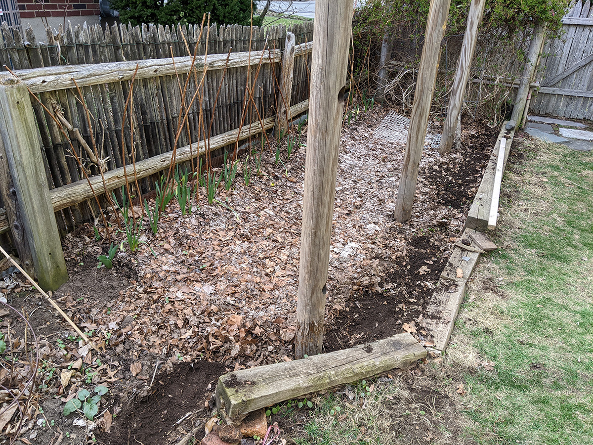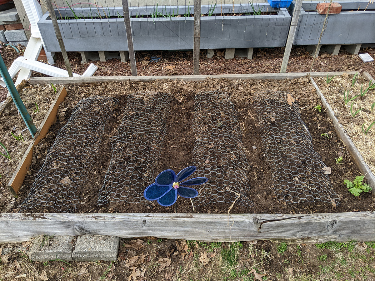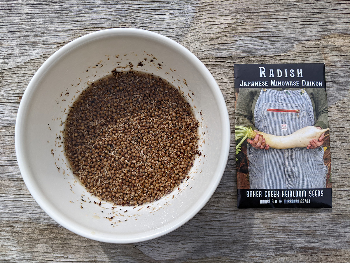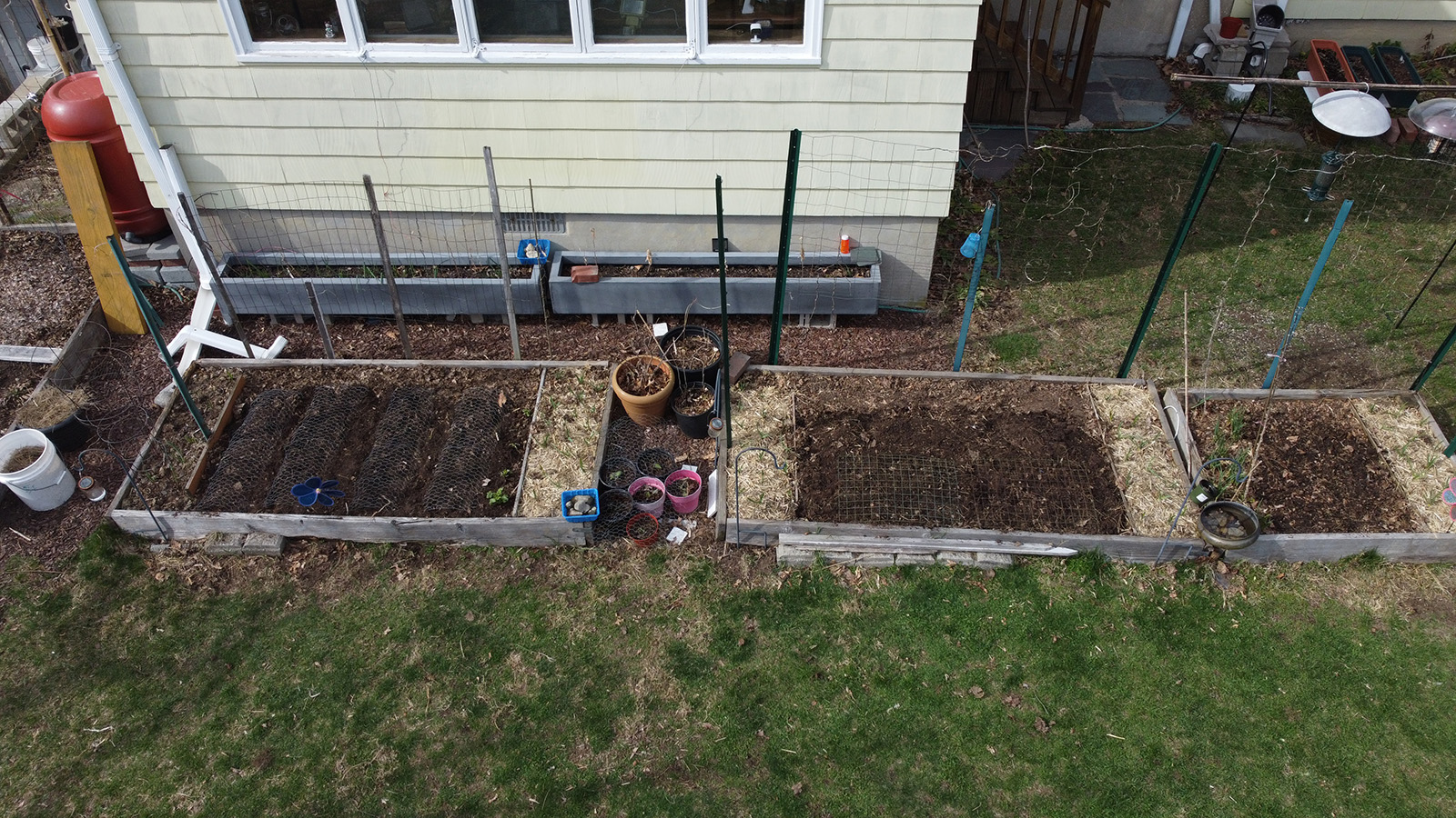 i left by 2:30pm, went to belmont to plant daikon radish and cilantro seeds in the backyard. i tilled the soil in RB0, RB1, RB2, and RB4, making sure not to go too far back where i've already planted wando peas about a week ago (not have emerged yet). RB2 already contained a few surviving daikons from last fall. i dug them up and relocated them, one of them had a daikon radish the size of a small hot dog. into the rest of RB2 i planted some daikon seeds. supposedly they don't do well in nitrogen-rich soil (they grew more leaves at the expense of tubers), so we'll see how they do. in RB0 i sprinkled a bunch of cilantro seeds that my father had soaked overnight. RB1 also had some cilantro seeds. the rest of the cilantro i planted in our newly expanded western garden bed.