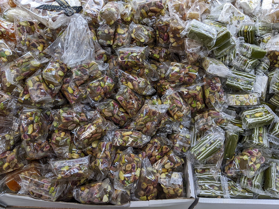we we walked for over 2 hours, 3-1/2 miles, and didn't get back until 3:30pm, my father said he could barely walk afterwards. i was searching for these fruit strips that i thought we bought at super vanak, but they didn't have any. maybe at roksana market, but they're actually closed on mondays. i ended up getting some rose-flavored turkish delights from arax market.