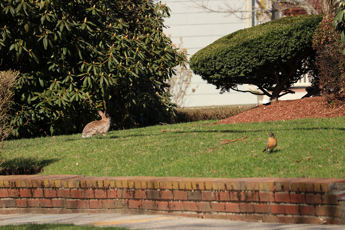 a lot of activities around the bird feeders, downy woodpeckers pecking at the suet cakes, house finches eating the sunflower seeds. we also watched a robin seemingly like magic just pluck a fat juicy worm from the ground. how do robins know where the worms are? and why do they keep their wings downwards like that? my father thought it was injured.